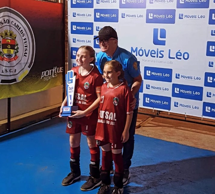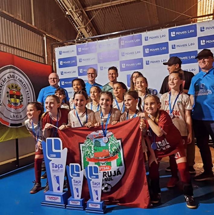 O time de futsal feminino sub-09 de Guarujá do Sul é campeão da 8ª Taça Móveis Léo de Futsal Regional Feminino, disputada neste domingo (12), em São Carlos. A conquista inédita veio em grande estilo, com vitória por 3 a 0 sobre as anfitriãs, diante de um ginásio lotado.