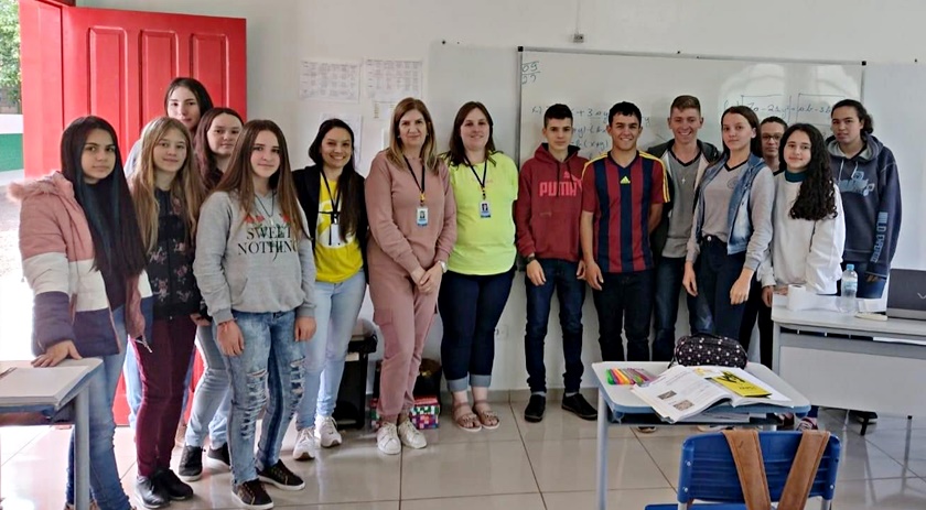 As psicólogas Lia e Aline, assistente social Marinês e a enfermeira Gabriely estiveram nas séries de 9º ao 3º ano do ensino médio, conversando com os alunos e professores sobre sinais de alerta, sobre questões que envolvem suicídio e também como procurar e oferecer ajuda.