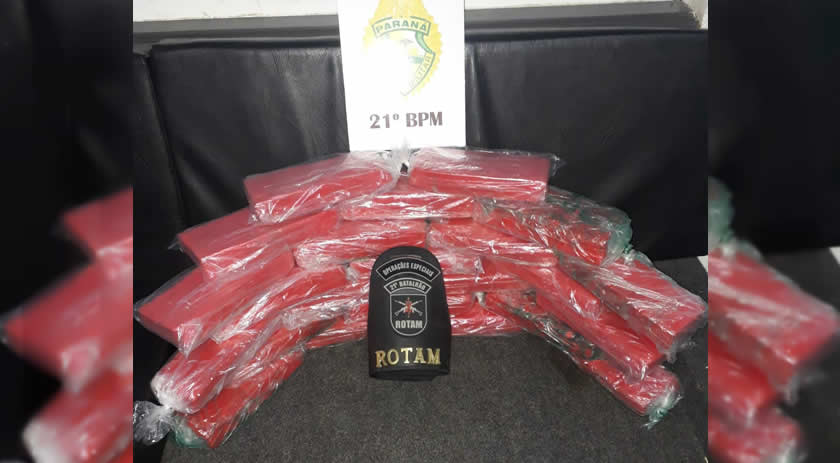 A equipe PM então realizou a verificação da mochila onde foi localizado 11 tabletes de maconha, a passageira assumiu ainda que estava transportando no bagageiro do ônibus mais uma mala com maconha, que após localizada, foi constatado que possuía 12 tabletes no interior.