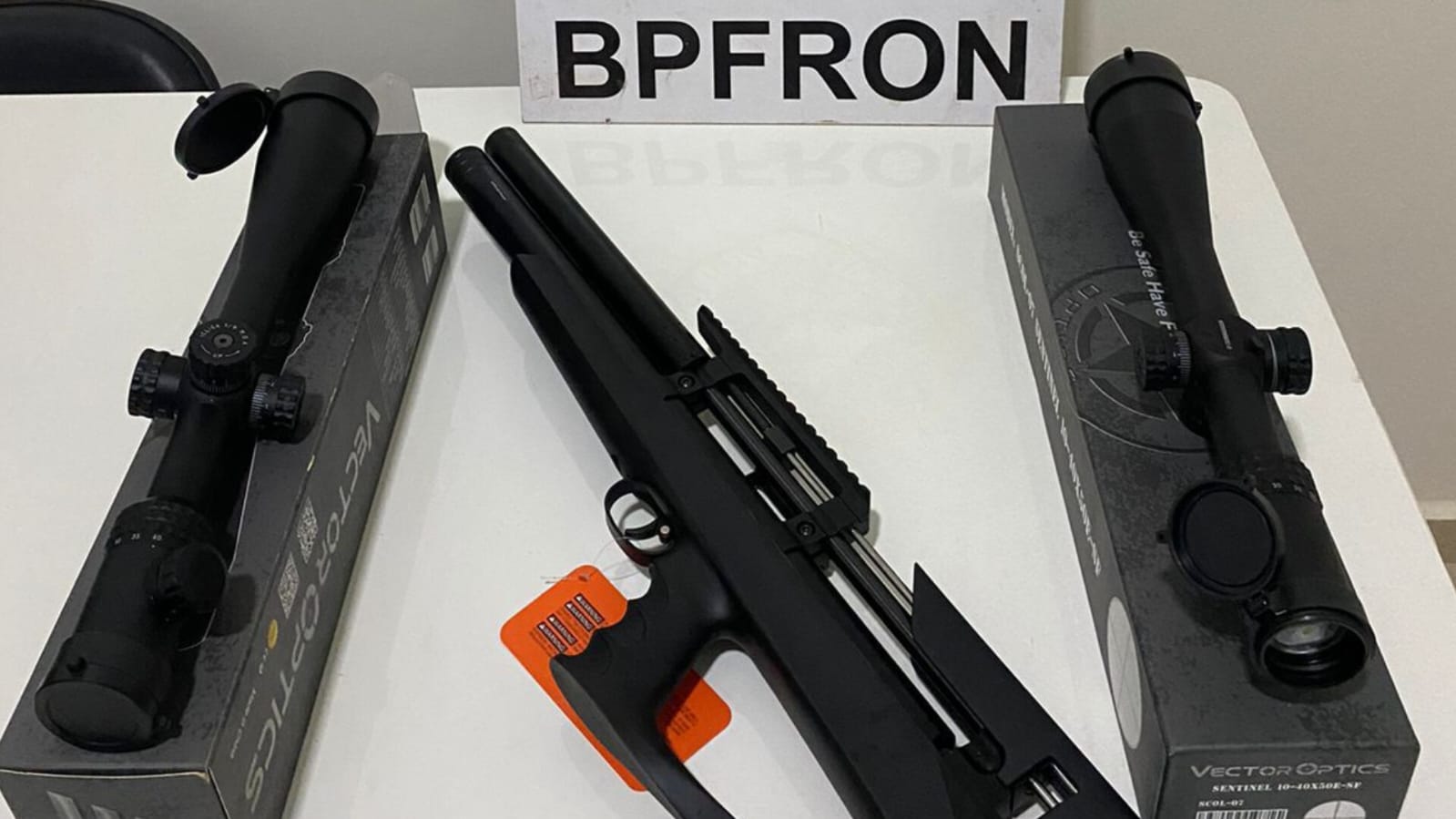 Na segunda feira (22/05), policiais militares do BPFron - Batalhão de Polícia de Fronteira durante Operação Hórus na cidade de Capitão Leônidas Marques-PR, abordaram uma camionete GM S10 conduzida por um homem de 29 anos, onde constava no interior do veículo uma espingarda de pressão cal.5.5 marca Snowpeak juntamente com 02 lunetas Vector Optics sem os trâmites aduaneiros. O homem foi identificado e liberado, o produto apreendido foi entregue na Receita Federal do Brasil em Santo Antônio do Sudoeste-PR.