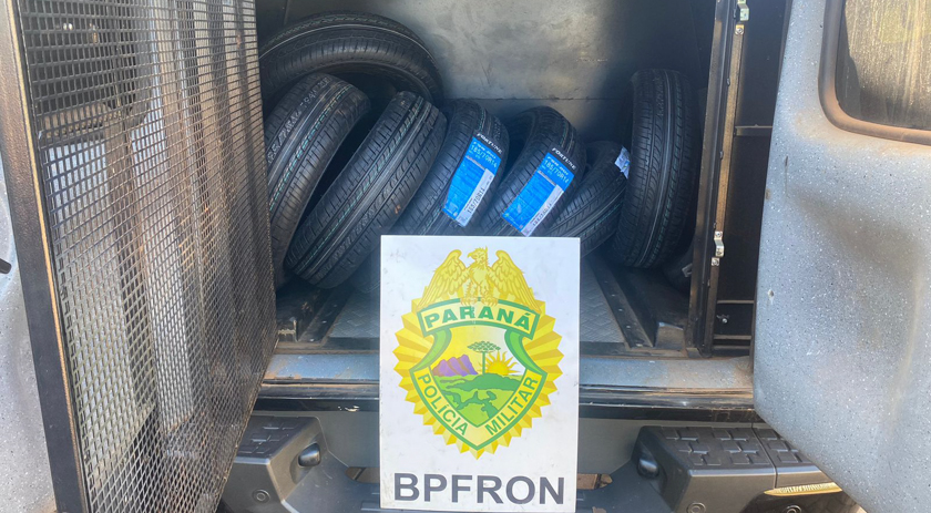 Em busca veicular, foram localizados oito pneus de origem estrangeira, sem os desembaraços aduaneiros.