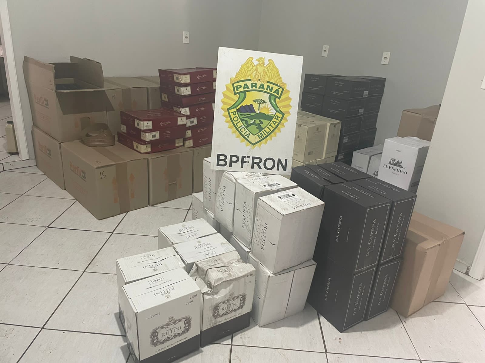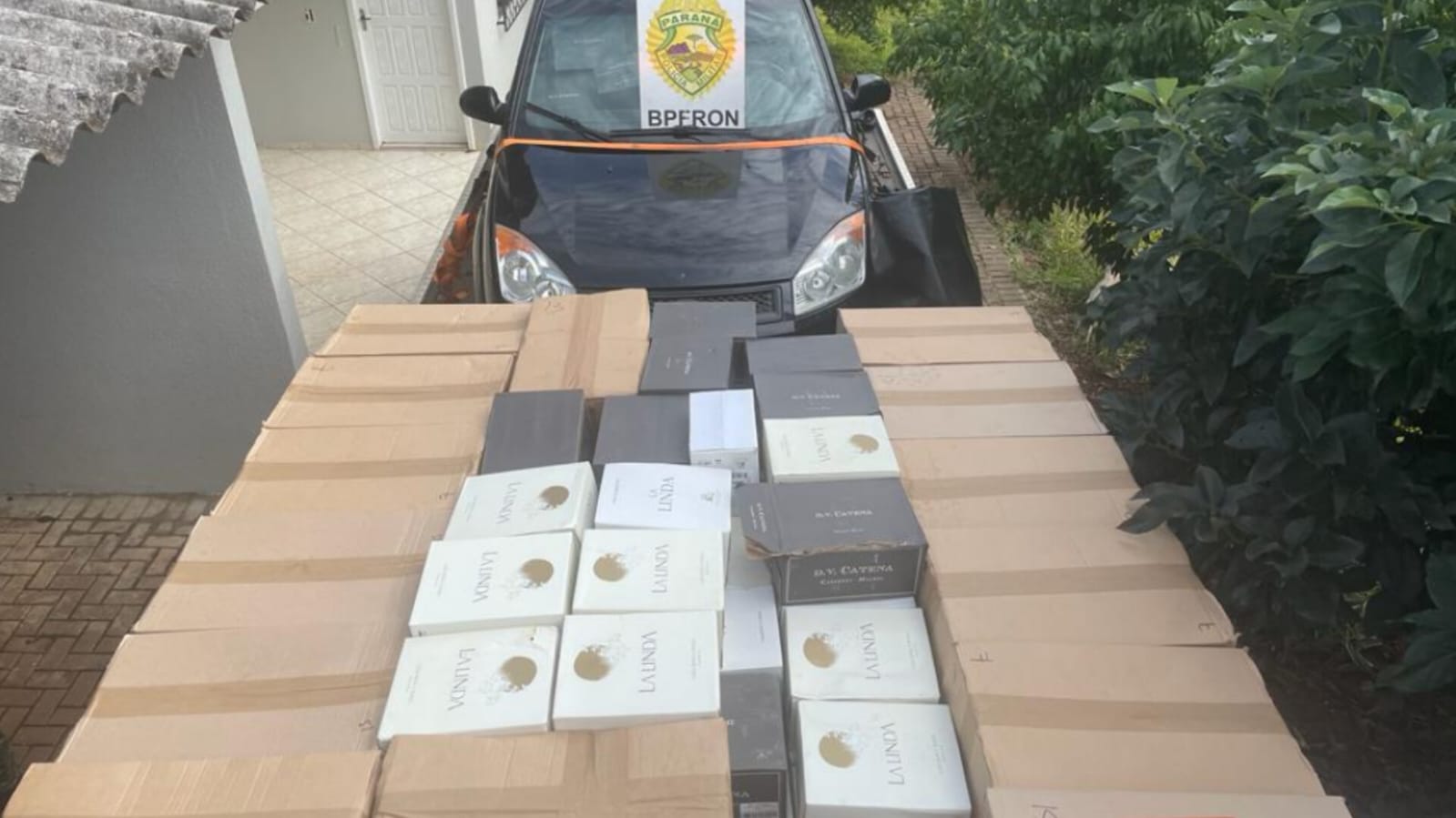 Nesta quarta-feira (12/07) policiais militares do BPFron durante a Operação Hórus realizavam patrulhamento em Francisco Beltrão e visualizaram um veículo que ao avistar a viatura saiu de uma residência em alta velocidade não sendo possível realizar abordagem. Em seguida a equipe deslocou à residência, estando aberta e no interior havia grande quantidade de vinhos argentinos.