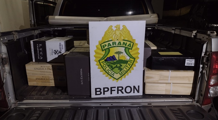 Após averiguações, foi constatado que no interior do veículo haviam 32 caixas de vinho de origem Argentina sem os trâmites aduaneiros.