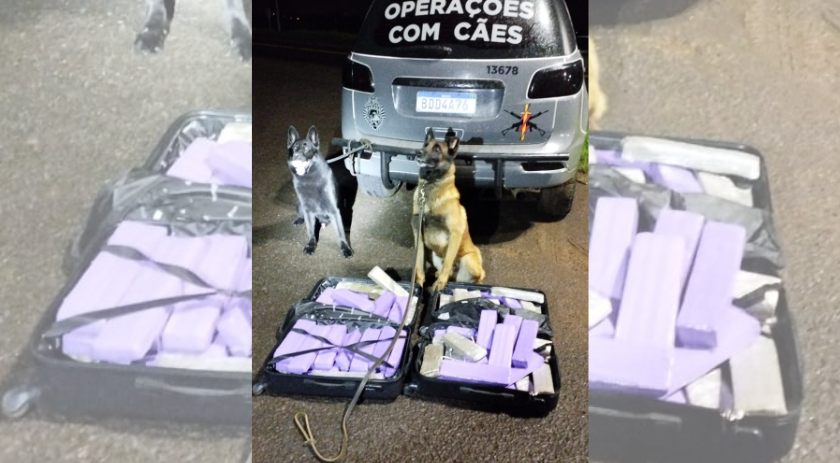 Durante a abordagem a diversos veículos, a equipe canina utilizou os cães de faro Baruck e Radar para inspecionar um ônibus em particular. Os cães apontaram com precisão a presença de algo suspeito em duas malas que estavam trancadas no bagageiro do ônibus. Foi então possível identificar o proprietário das malas, e ao abrir as bagagens, foram encontrados 43,100kg de maconha, divididos em 70 tabletes.