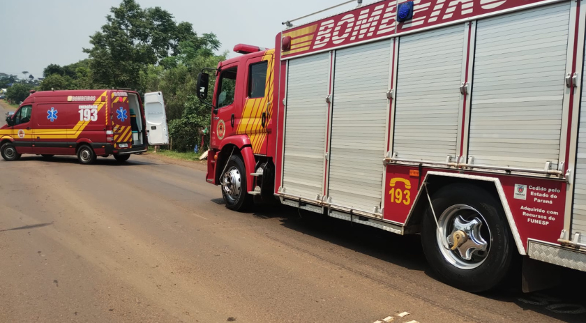 No início da tarde de domingo, dia 12, por volta das 13h10, equipes de socorristas do SAMU e Corpo de Bombeiros, após chamado, deslocaram-se até a BR-163, via de acesso ao Porto Seco de Dionísio Cerqueira, para atendimento a um acidente de trânsito envolvendo uma motocicleta e um carro.