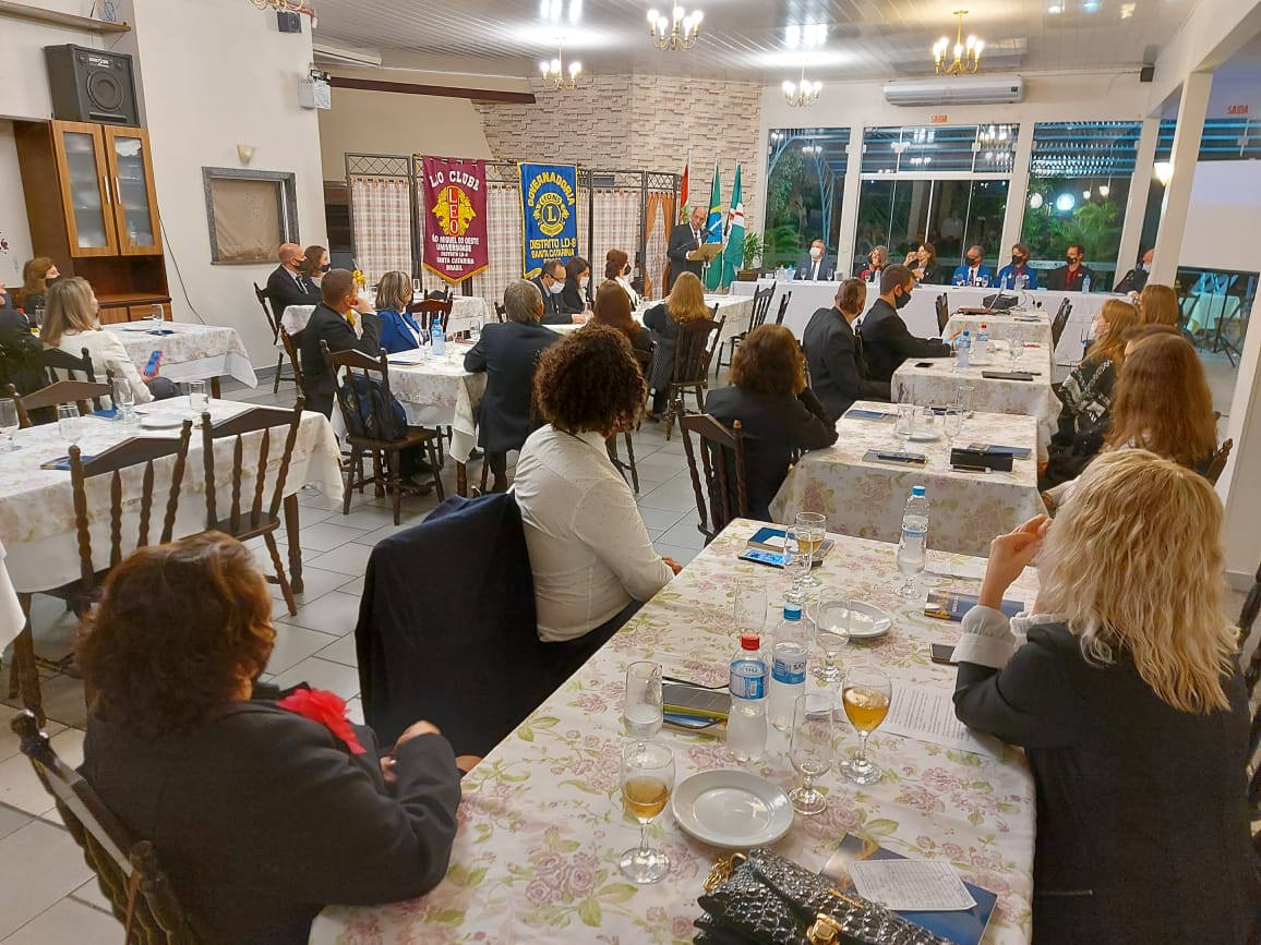 O Lions Clube São Miguel Universidade realizou, na noite de quinta-feira (24), a cerimônia de posse da nova diretoria do clube de serviço. Lizete Lang assumiu o cargo ocupado por Ageu Vieira e segue a frente da entidade até 2022. O evento teve a presença do governador do Distrito LD8, Rid Zatta, vice-prefeito, Edenilson Zanardi e membros do Lions Clube São Miguel do Oeste, Lioneses e LEO Clube.
