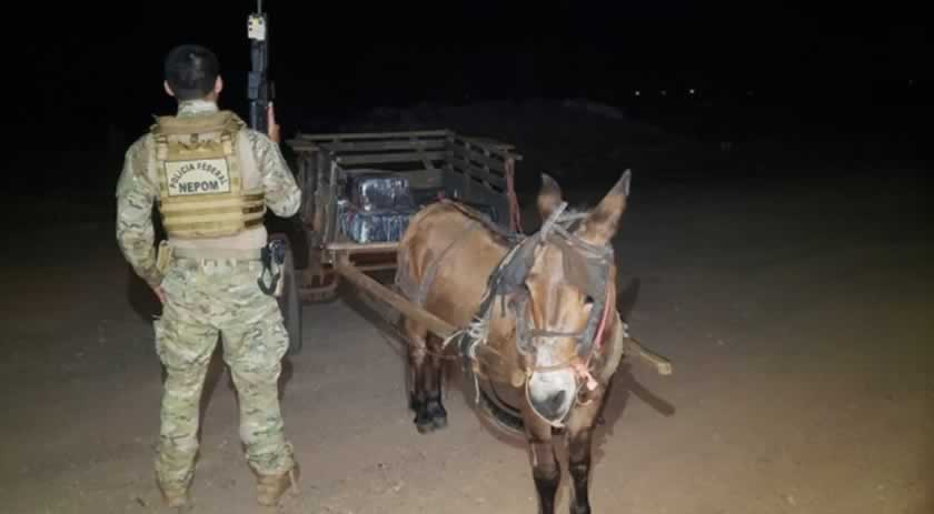 Um burro de carga foi encontrado com aproximadamente 300 quilos de maconha, às margens do Rio Paraná, em Guaíra, no Oeste do Paraná. A droga estava em uma carroça e foi localizada na noite de terça-feira (6).