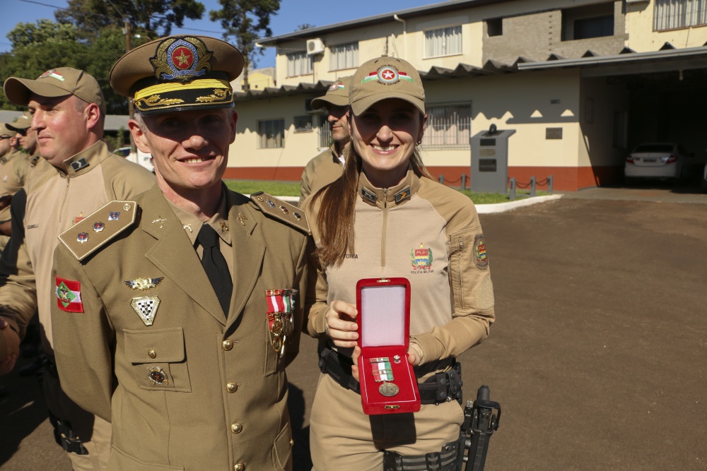 Durante a Solenidade foi realizada a entrega dos Brasões por Mérito Pessoal 3ª, 2ª e 1ª Categorias para os policiais militares agraciados, bem como realizado o ato de entrega de medalhas por Tempo de Serviço 30, 20 e 10 anos de serviço. Também, realizada a entrega das Medalhas de Mérito Rodoviário, Lopes Vieira e Lealdade e Constância.