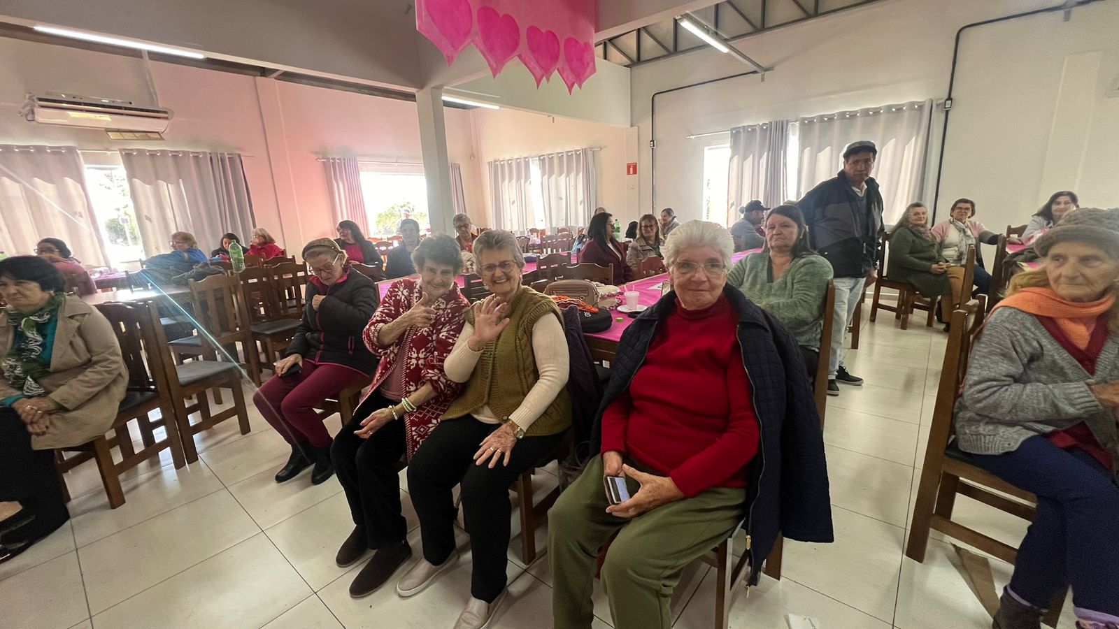 A programação do evento incluiu uma emocionante apresentação do Coral dos Idosos, que encantou a todos os presentes com suas canções. Após o almoço, a animação continuou com um belo matinê, onde todos puderam se divertir e dançar, aproveitando a tarde de confraternização.