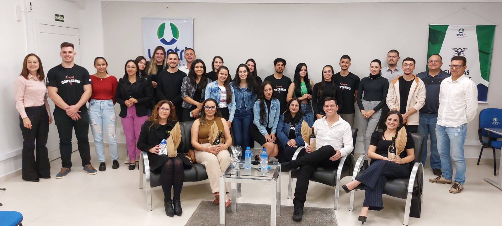 Após as apresentações, os acadêmicos se dirigiram ao auditório da Unetri, onde aconteceu uma Rodada de Conversa com contadores e com egressos do curso de Ciências Contábeis da Unetri Faculdades.