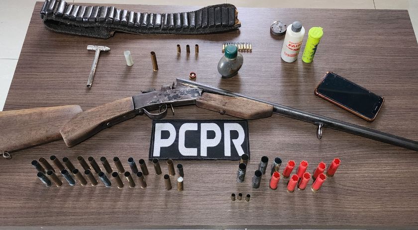 Chegando no local, a Polícia Civil fez a vistoria na residência, onde encontrou uma espingarda calibre 28, munição recarregada, pólvora, balim de chumbo para fazer munições. O homem vai responder por três crimes: posse irregular de arma de fogo, posse de calibre restrito e comércio de arma de fogo.