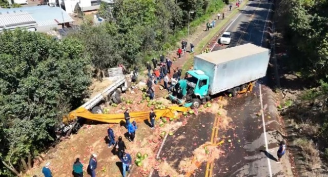 Um acidente envolvendo ao menos dois caminhões deixa o trânsito na SC-157 completamente bloqueado no início da tarde desta segunda-feira, dia 26. A colisão ocorreu no km 40 da rodovia estadual, na altura do município de Formosa do Sul, no Oeste de Santa Catarina.