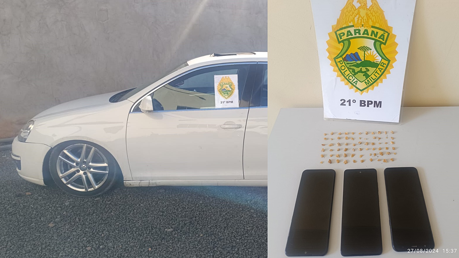 Por volta das 14h40 de terça-feira (27), uma ação da equipe de Radiopatrulha (RPA) resultou na prisão de três indivíduos e na apreensão de 65 pedras de crack. O fato foi registrado no município de Dois Vizinhos. A abordagem ocorreu em um veículo estacionado, onde dois dos suspeitos estavam fora do carro e um estava dentro.