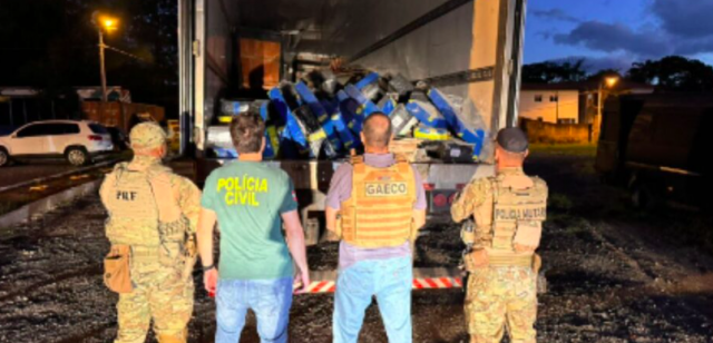 Uma operação das forças de segurança de Santa Catarina levou à apreensão de uma tonelada de drogas nesta sexta-feira (8). O material estava no baú de um caminhão interceptado em Palhoça, na Grande Florianópolis. Sete pessoas foram presas em flagrante por tráfico de drogas.