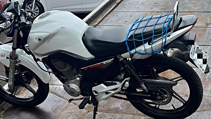 Durante as diligências, os policiais localizaram o veículo transitando na Rua Colorado e realizaram a abordagem do condutor. O homem, maior de idade, foi identificado e, após verificação, constatou-se que ele não possuía habilitação para conduzir a motocicleta.