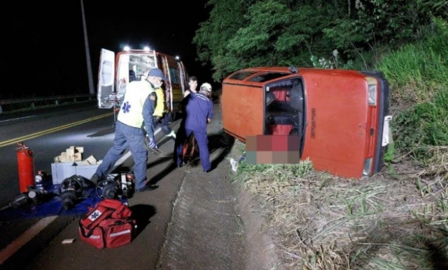 Um Fiat Uno, com placas de Formosa do Sul, saiu da pista e capotou nas margens da rodovia, na madrugada desta sexta-feira, dia 6, na SC-157, em Quilombo, no Extremo-Oeste catarinense.