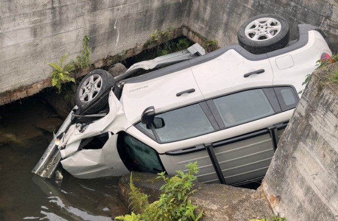 Três jovens de 16, 17 e 19 anos fugiram da polícia com um veículo furtado e acabaram caindo em um buraco com o automóvel no início da manhã desta sexta-feira, dia 6, na SC-401, em Florianópolis, no Litoral catarinense.