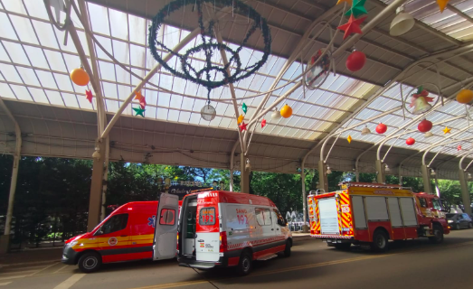 Duas crianças foram socorridas após sofrerem queda de escada na tarde desta quarta-feira, dia 18, na praça central de Maravilha.