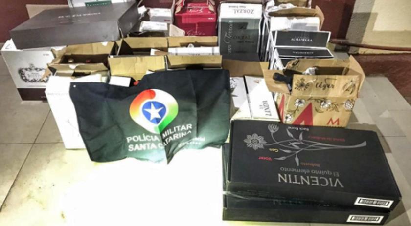A abordagem foi realizada no centro em Dionísio Cerqueira -SC, por volta das 21h, o veículo foi abordado e ao ser realizado busca veicular foram localizadas 31 caixas com bebidas sem os devidos tramites aduaneiros - 186 garrafas.