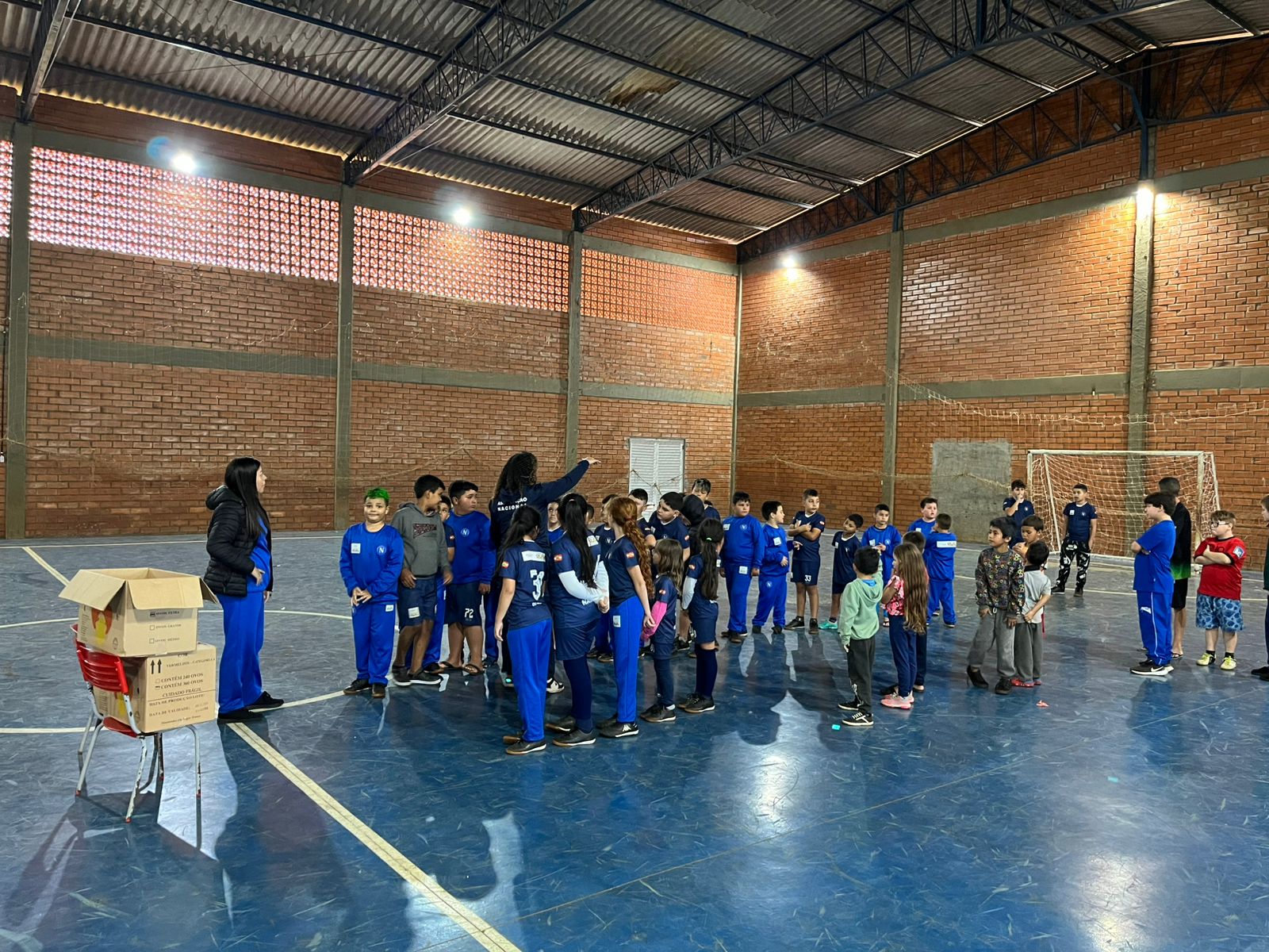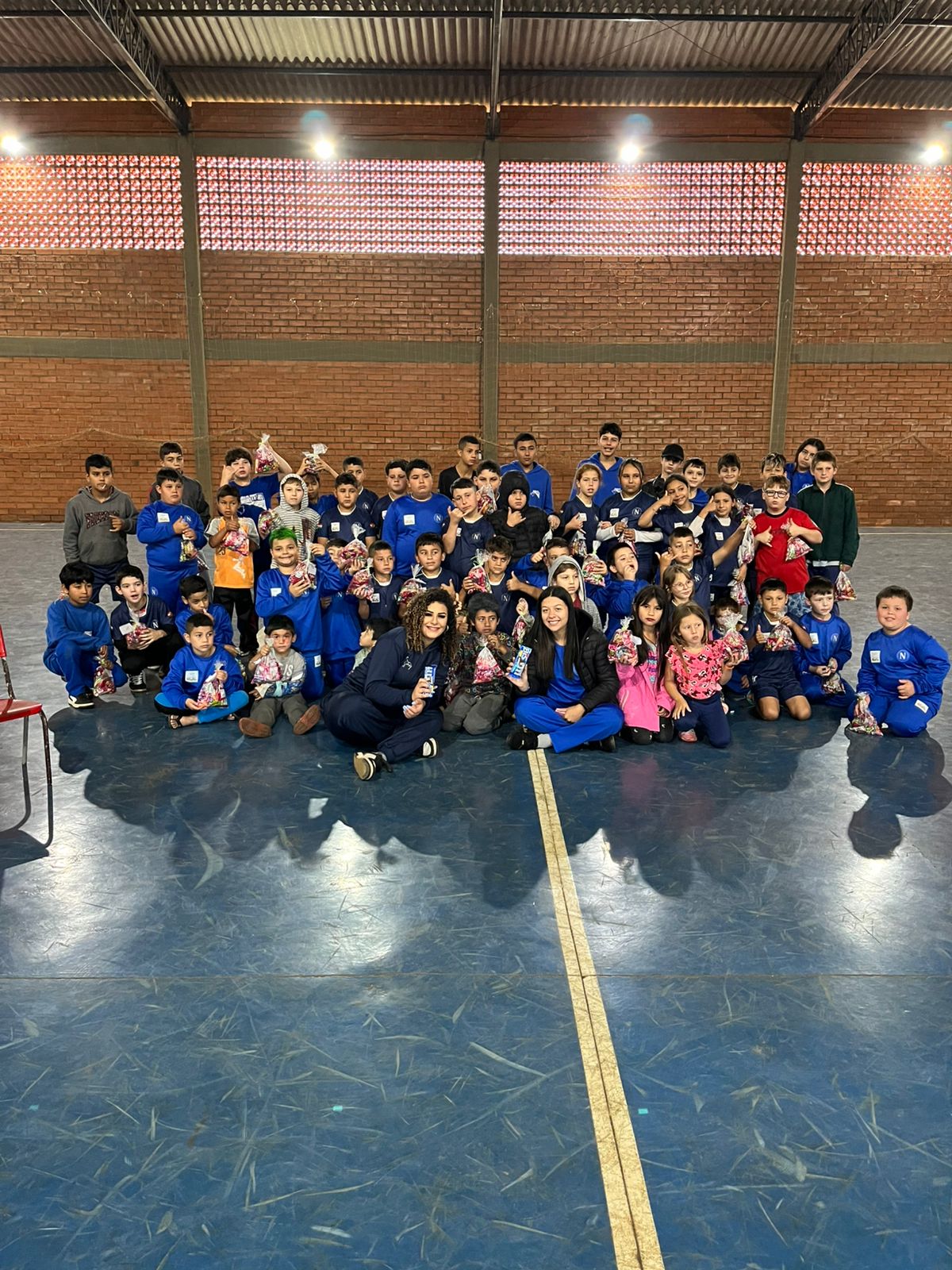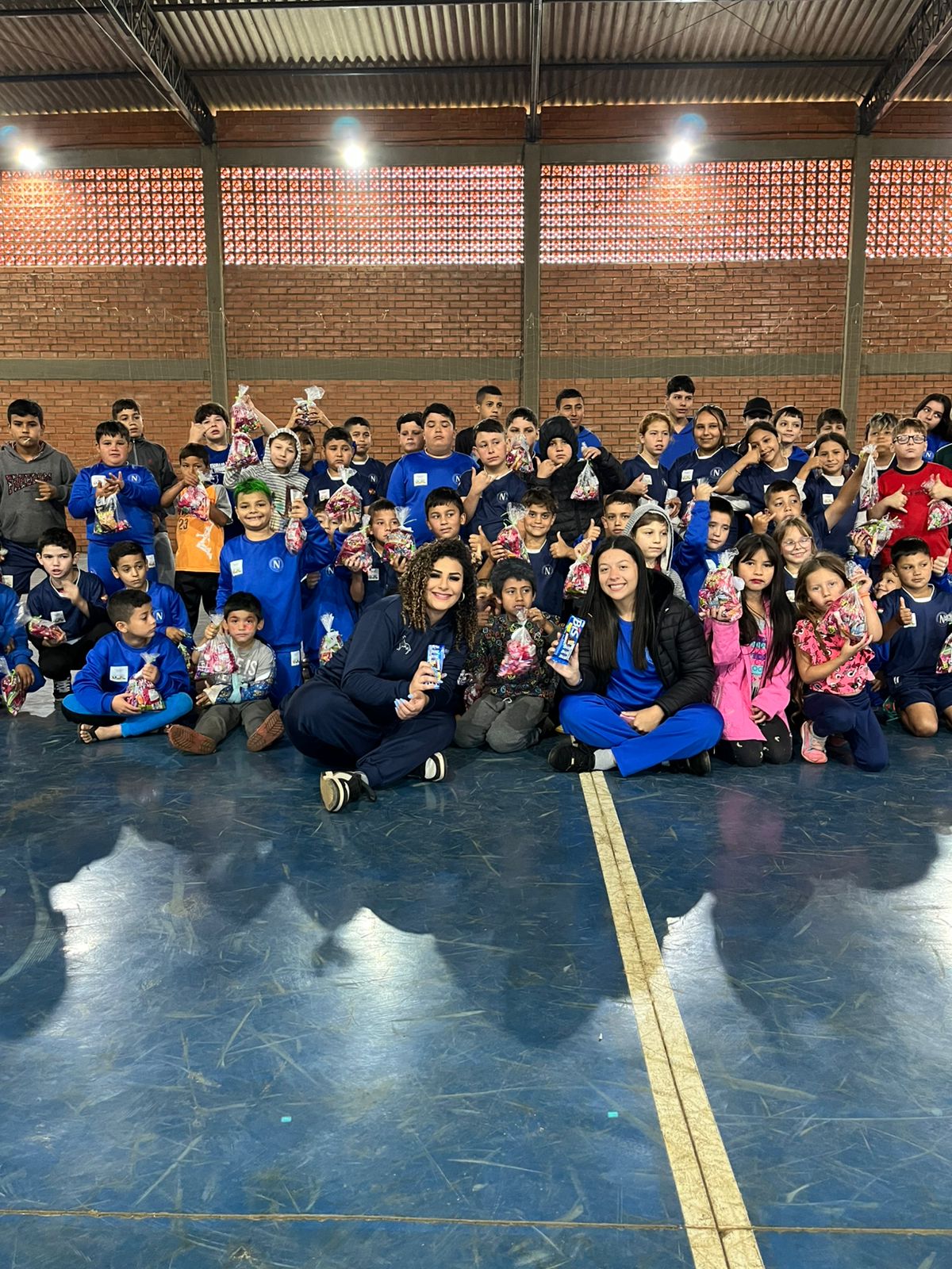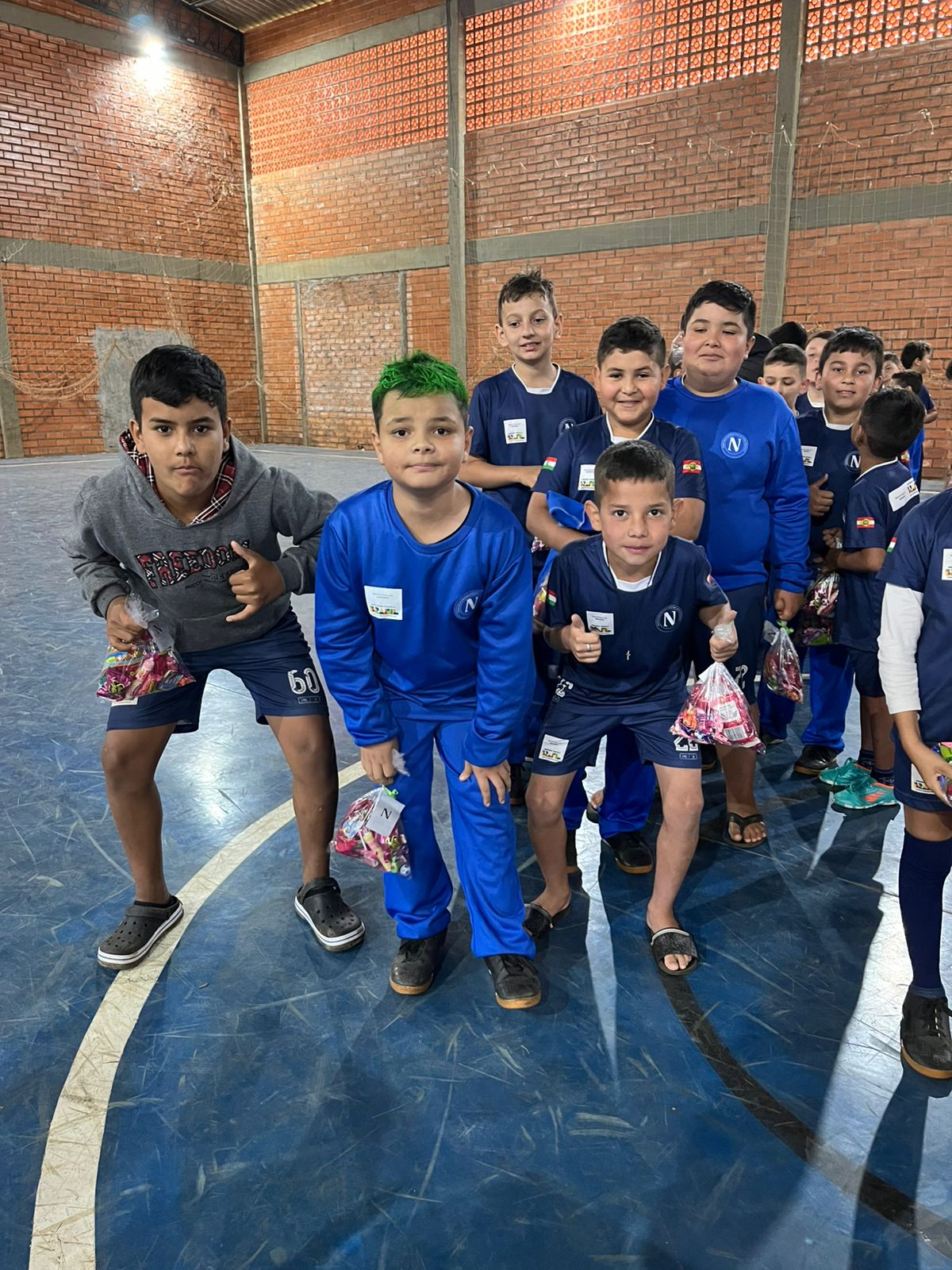 A Associação Nacional realizou no dia de ontem a distribuição de cestas e doces para 80 crianças matriculadas e que estão participando do projeto da escolinha de futsal na comunidade.