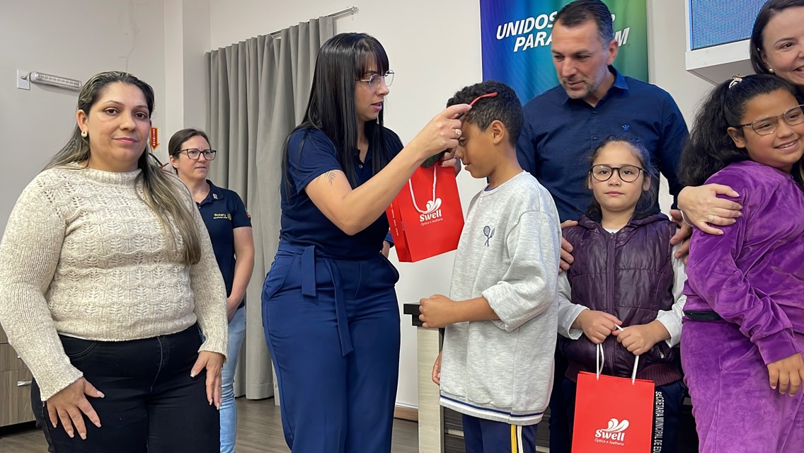 Crianças da rede municipal de ensino foram beneficiadas com consultas oftalmológicas, lentes e armações totalmente gratuitas.