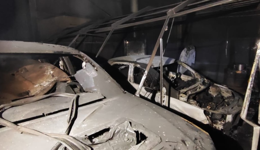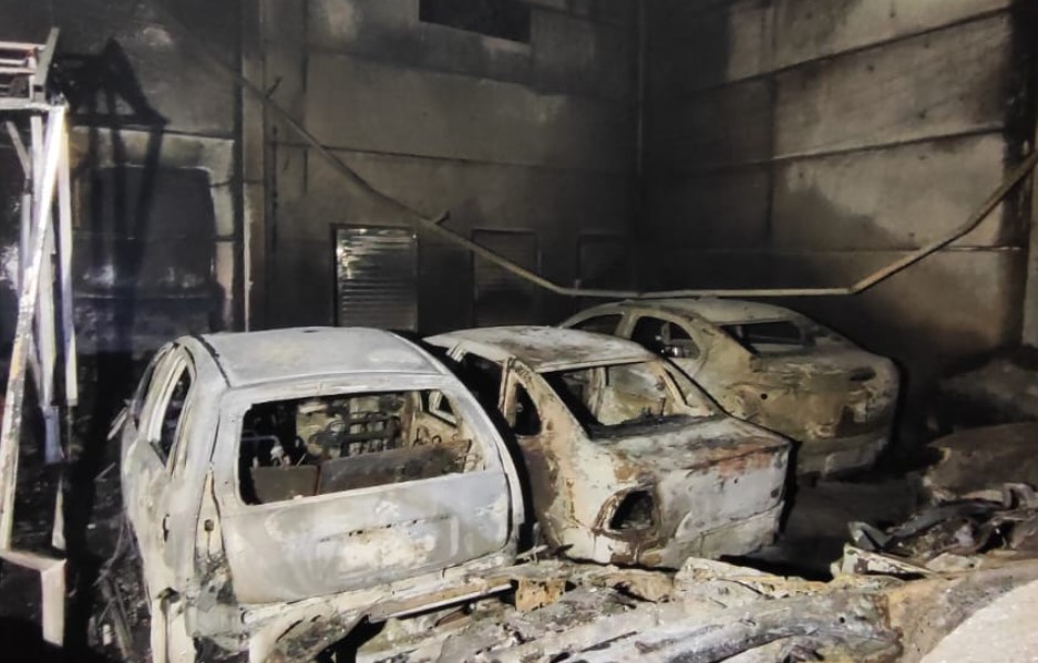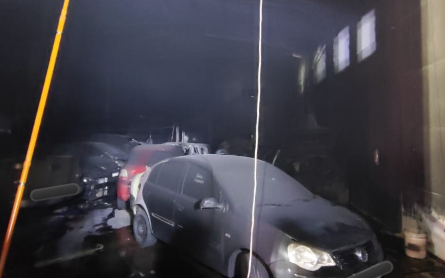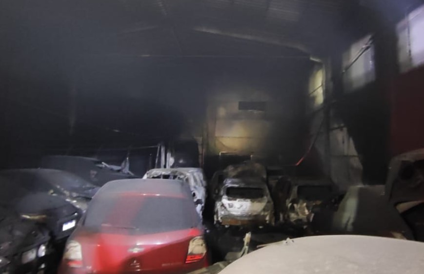 No interior da oficina havia 16 veículos, todos atingidos pelo fogo ou pelo calor, alguns completamente destruídos. Após o controle do incêndio e a eliminação dos riscos, a edificação foi deixada fechada para a perícia.