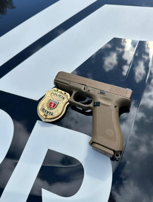 Durante as diligências, a Polícia Civil identificou a caminhonete envolvida. O veículo foi localizado na cidade de Ubiratã, com apoio da unidade local, e apreendido para análise. Também foi apreendida a arma utilizada no crime: uma pistola Glock calibre 9 mm, que será submetida a exames periciais.