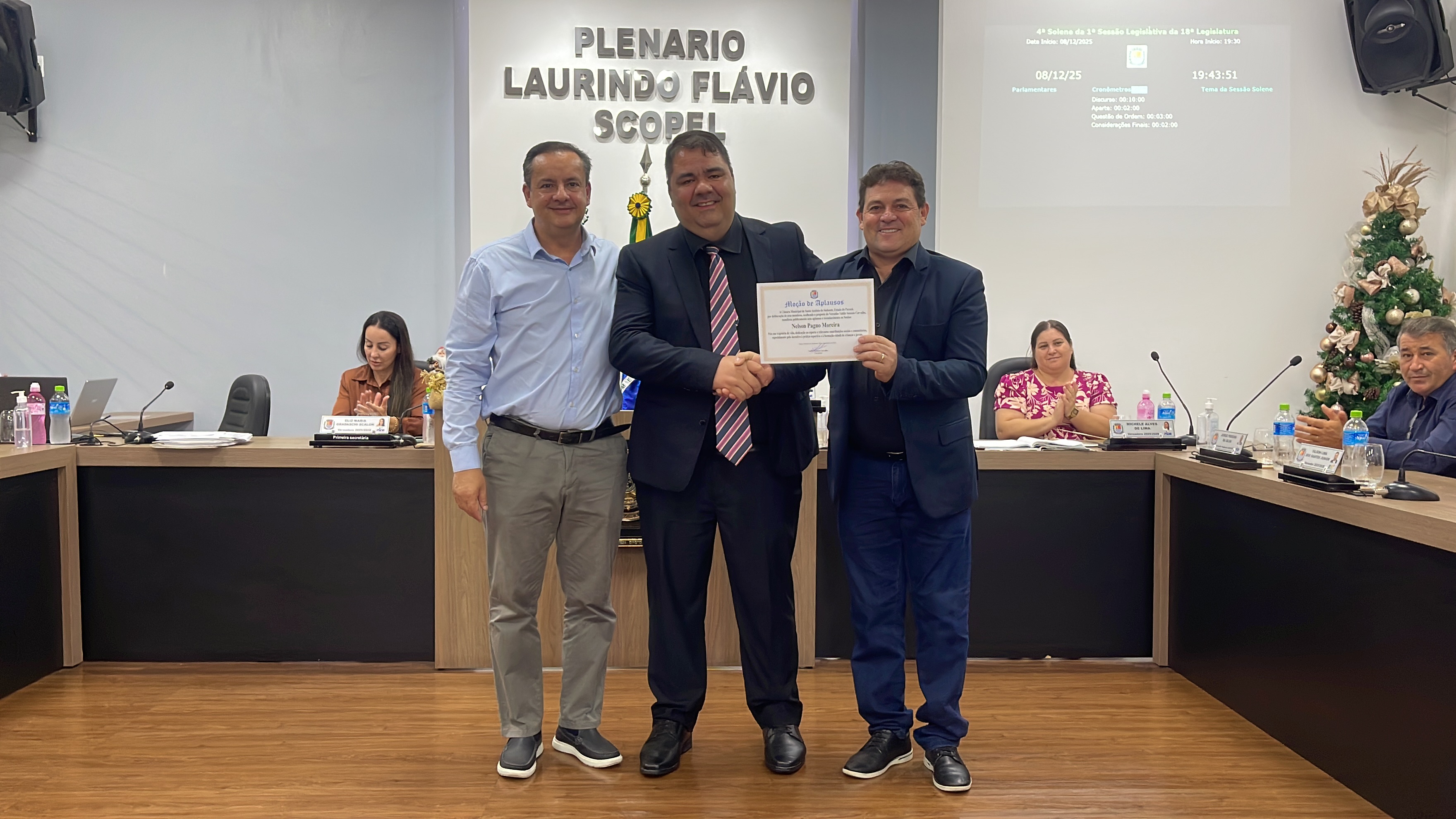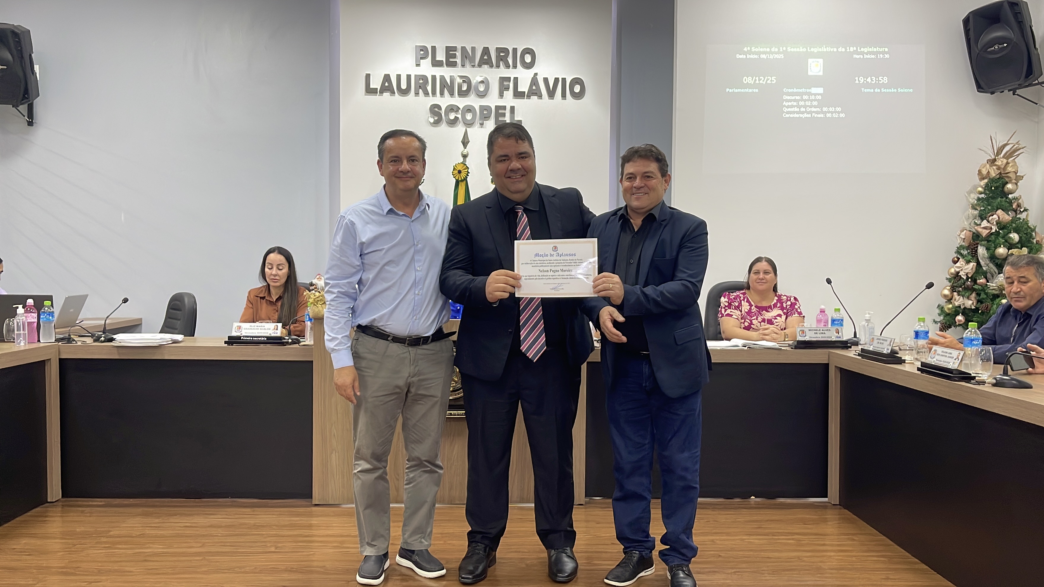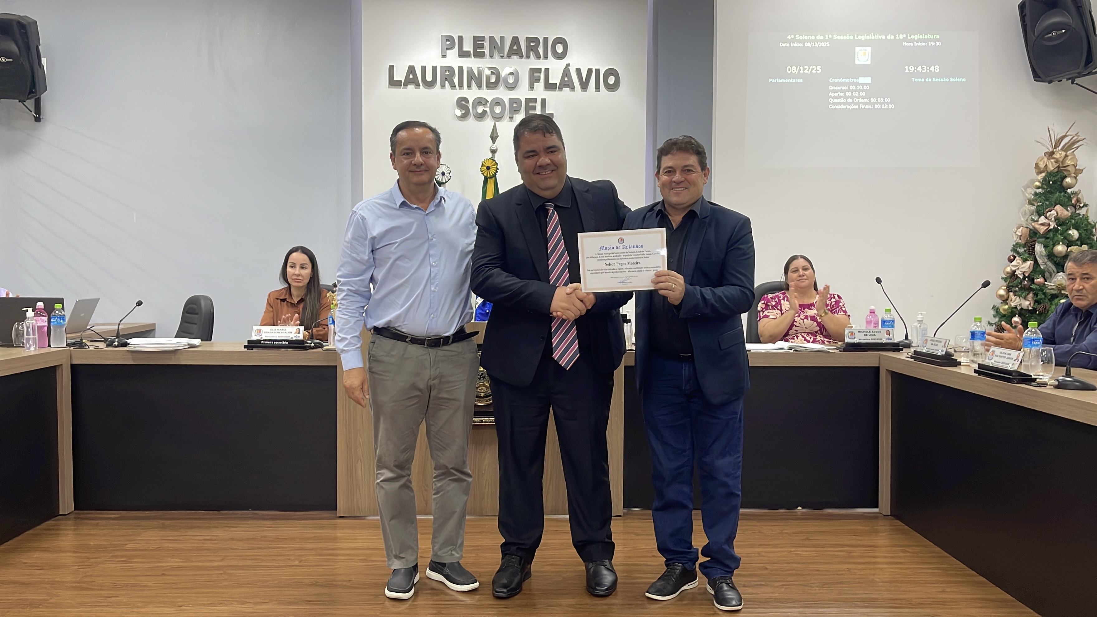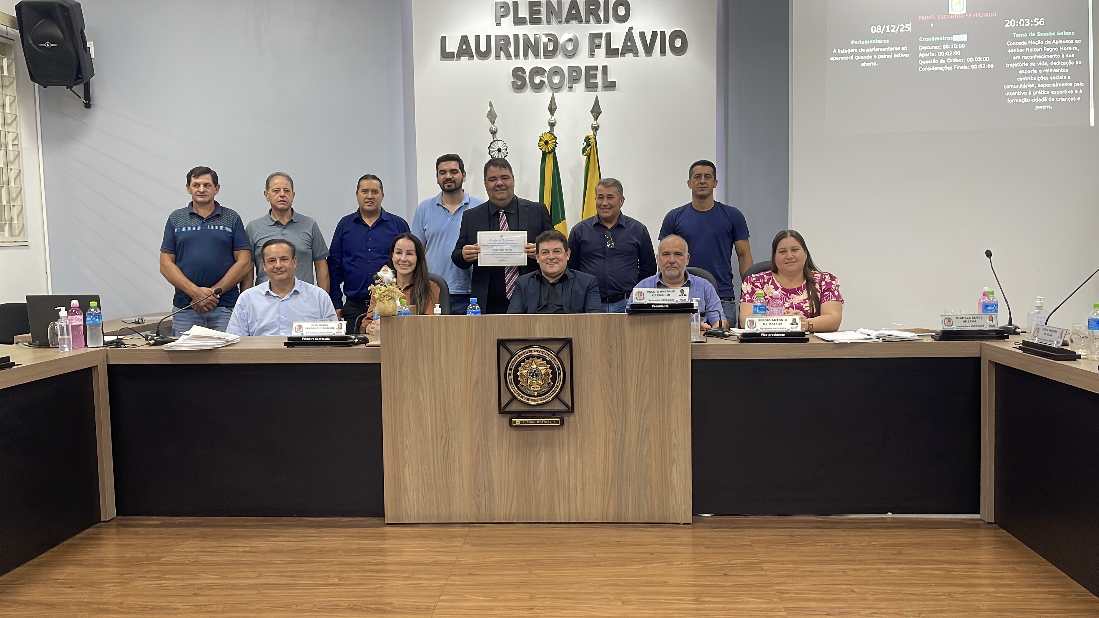 A moção foi apresentada pelo presidente da Câmara, vereador Valdir Antônio Carvalho, o Dico, aonde destacou a importância de homenagear e parabenizar o empresário Nelson pela iniciativa do incentivo ao esporte, cultura e laser. O plenário Flávio Laurindo Scopel ficou lotado de familiares, amigos e autoridades que acompanharam a homenagem.