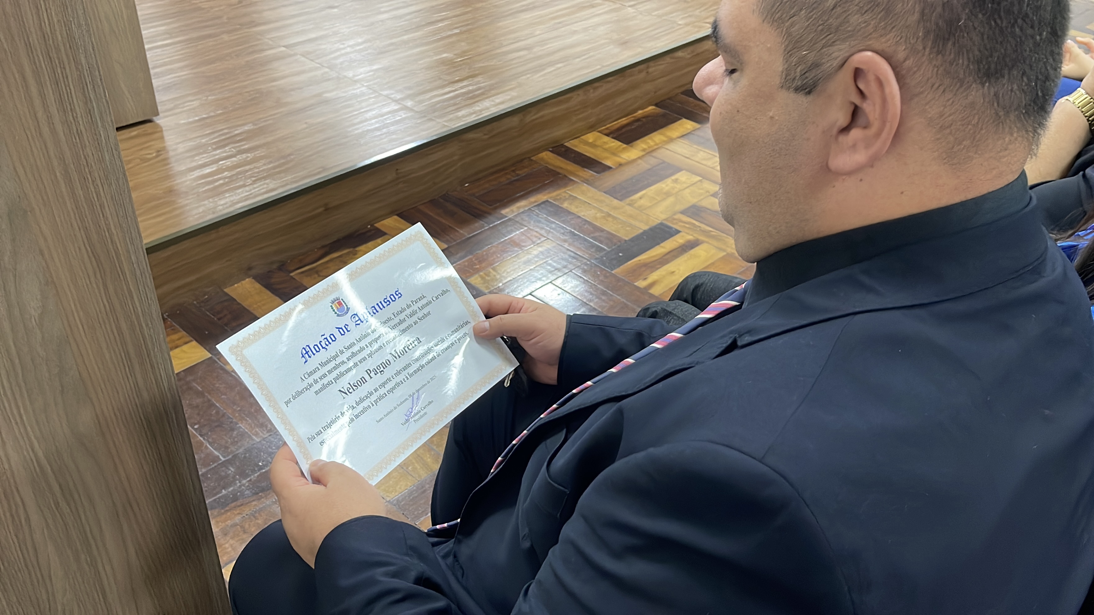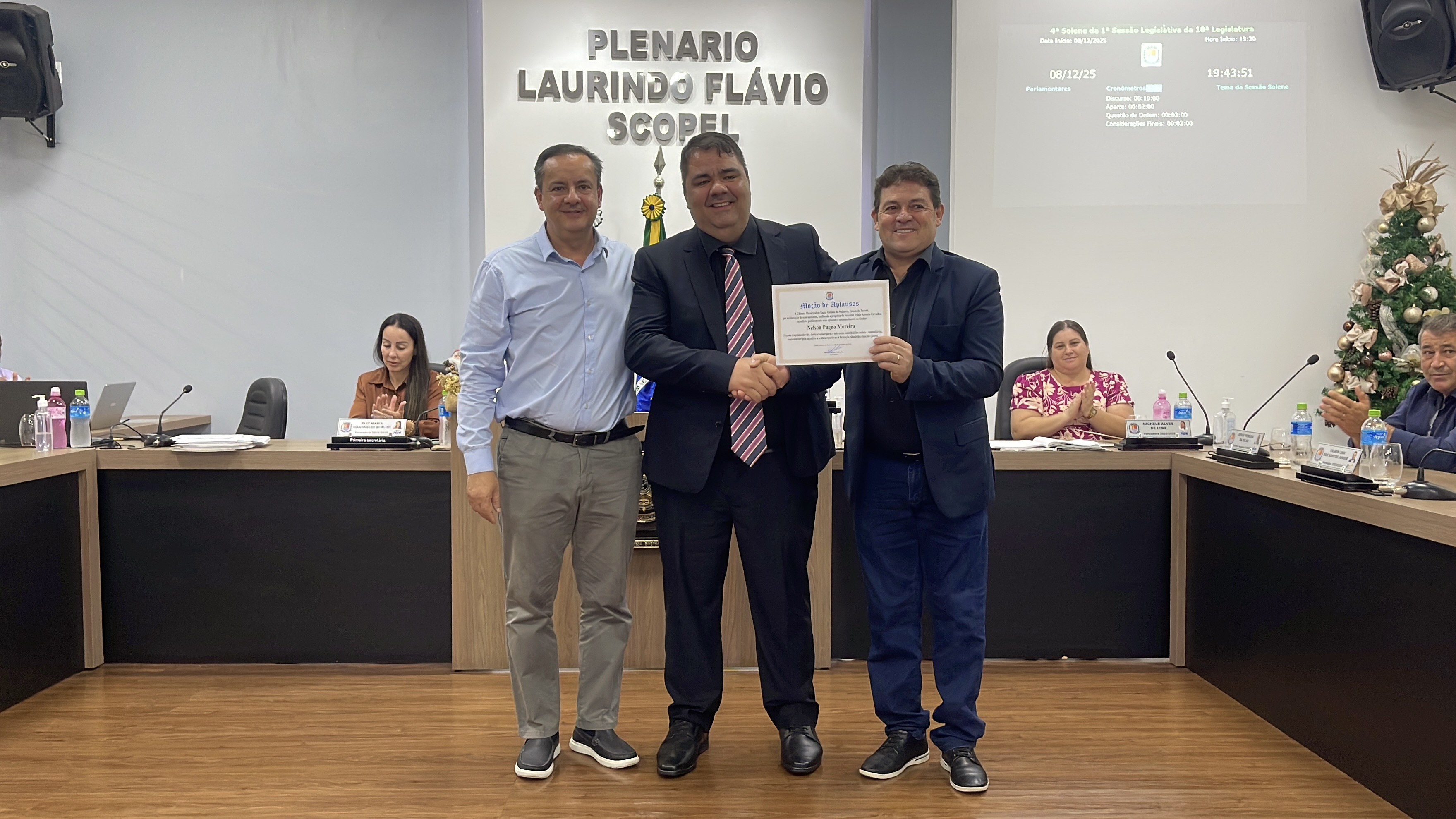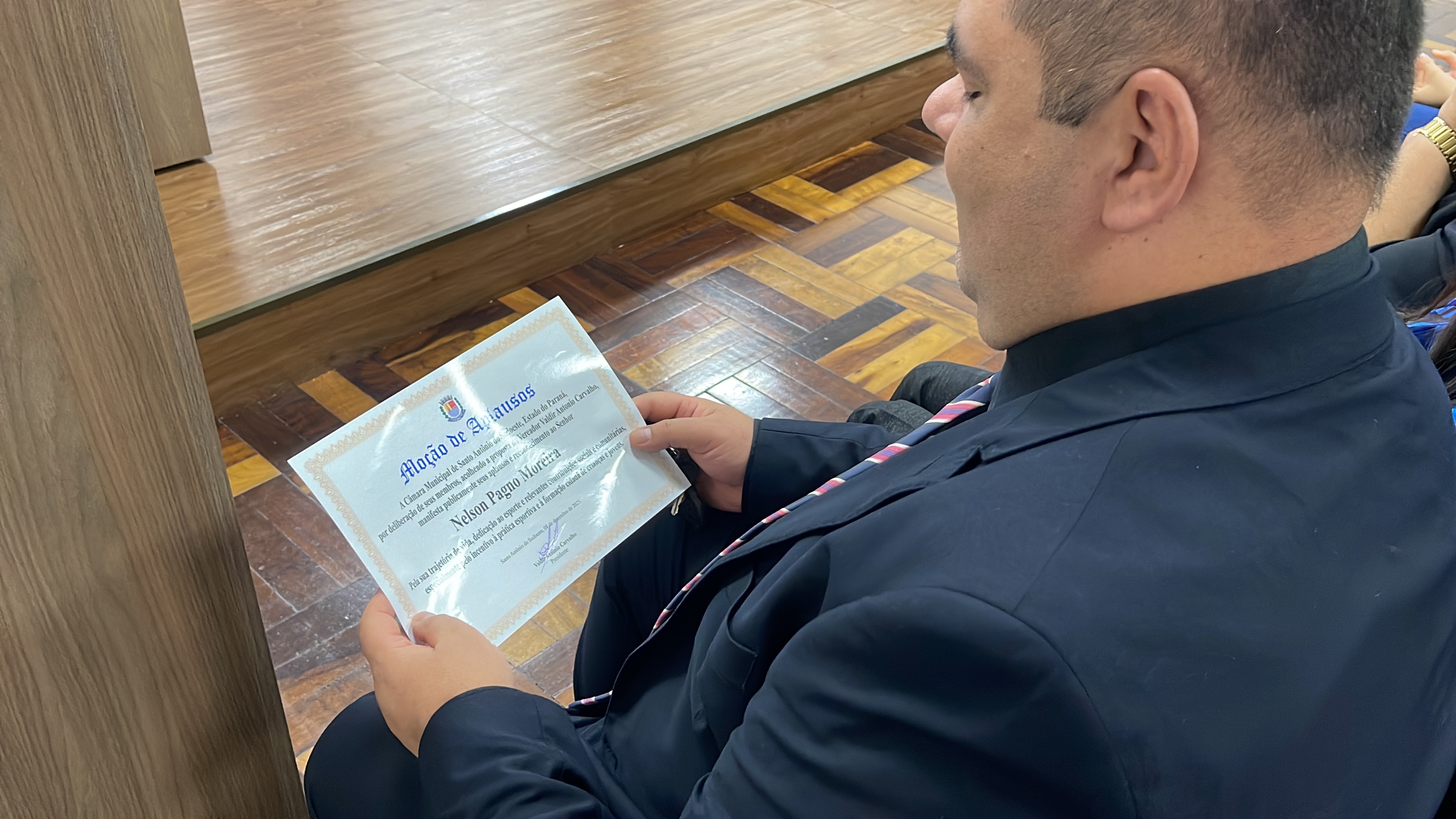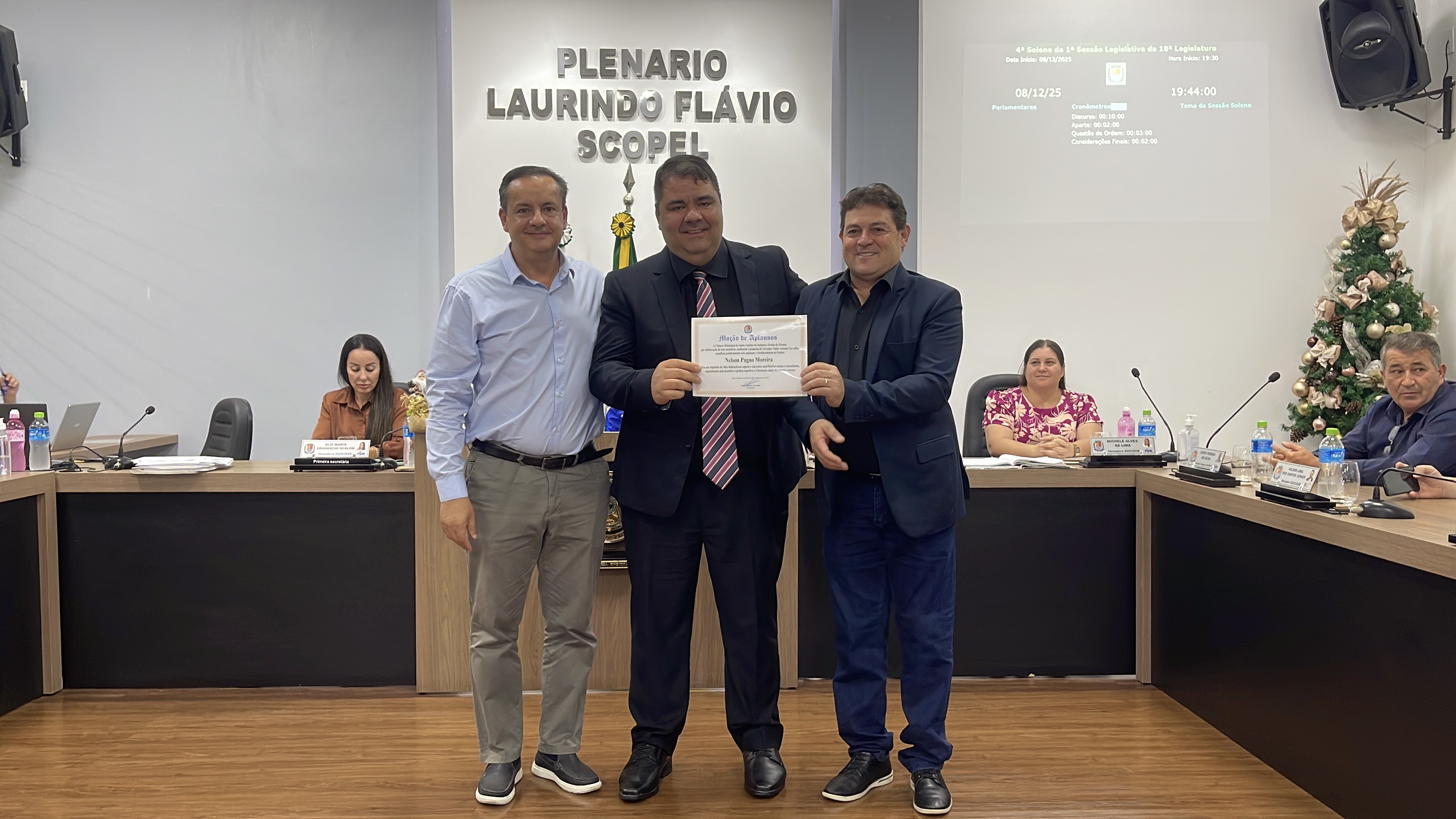 A moção foi apresentada pelo presidente da Câmara, vereador Valdir Antônio Carvalho, o Dico, aonde destacou a importância de homenagear e parabenizar o empresário Nelson pela iniciativa do incentivo ao esporte, cultura e laser. O plenário Flávio Laurindo Scopel ficou lotado de familiares, amigos e autoridades que acompanharam a homenagem.