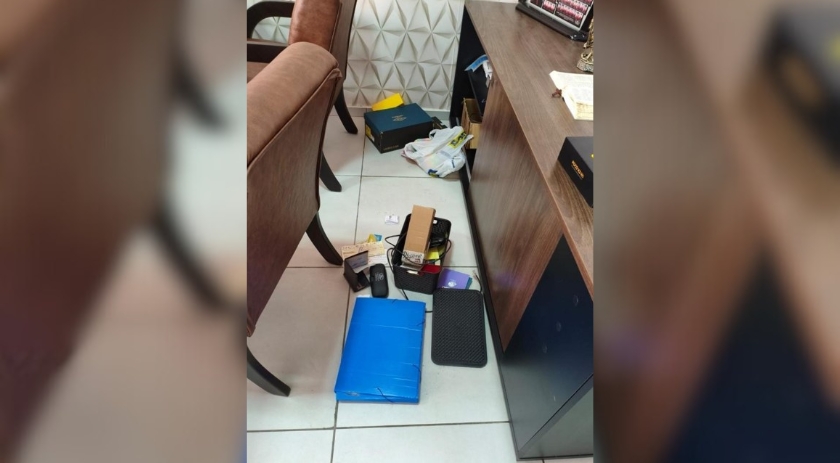 No local, o responsável relatou que, ao chegar pela manhã, constatou marcas de barro em uma das janelas, indicando que os autores teriam acessado o interior do imóvel durante a madrugada. Do escritório foram subtraídos um notebook da marca Dell, dois aparelhos celulares Samsung e uma quantia em dinheiro.