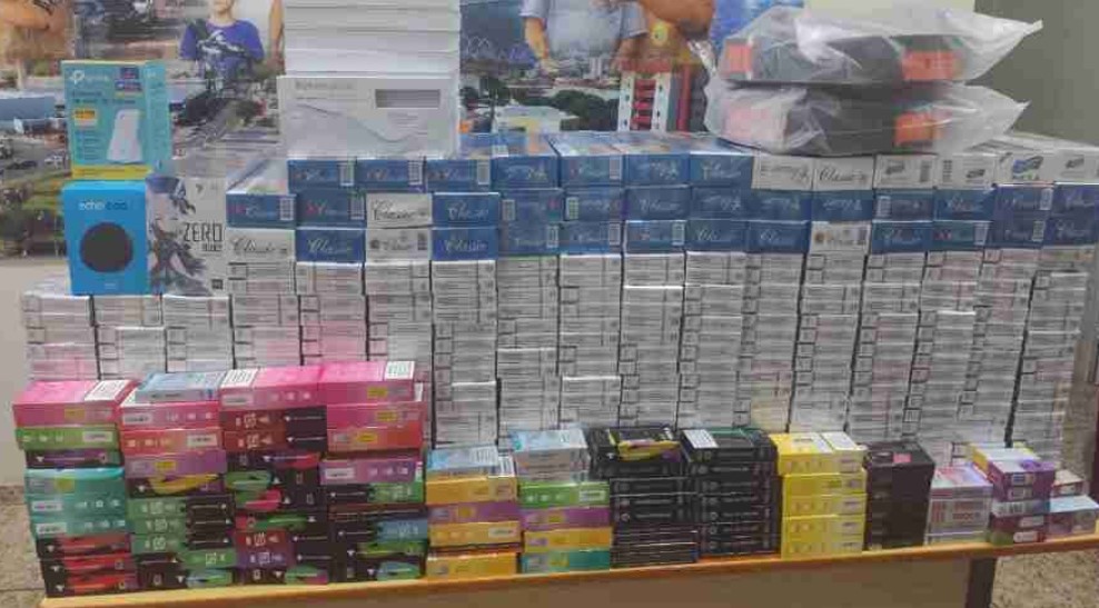 Produtos contrabandeados do Paraguai foram apreendidos na noite de sexta-feira (23), durante uma fiscalização realizada pela Cavalaria da Polícia Militar em Cascavel, no Oeste do Paraná. A abordagem ocorreu na Avenida Tancredo Neves.