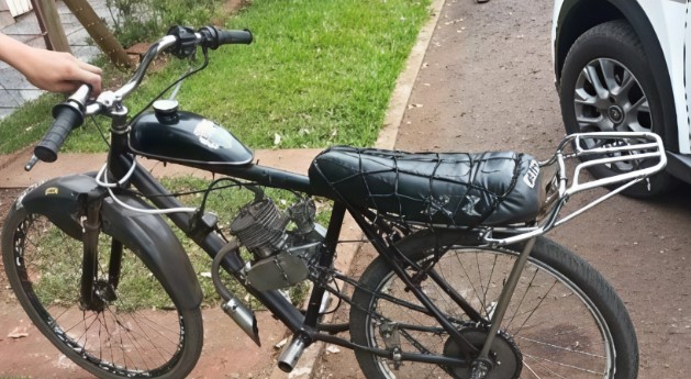 Na tarde de quarta-feira (28), por volta das 14h, a Polícia Militar realizou a abordagem de uma bicicleta com motor a combustão acoplado de forma artesanal, que circulava pelo centro de Romelândia provocando som excessivo e perturbando os usuários da via.