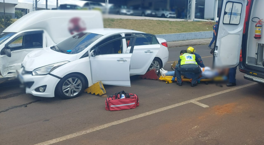 A condutora do HB20 sofreu ferimentos e precisou ser socorrida pelas equipes do Corpo de Bombeiros e do SAMU. Ela foi imobilizada em maca rígida e transportada ao Hospital Municipal para avaliação médica. A passageira da Fiat Strada também recebeu atendimento no local, foi colocada em maca rígida e levada ao hospital para cuidados médicos.