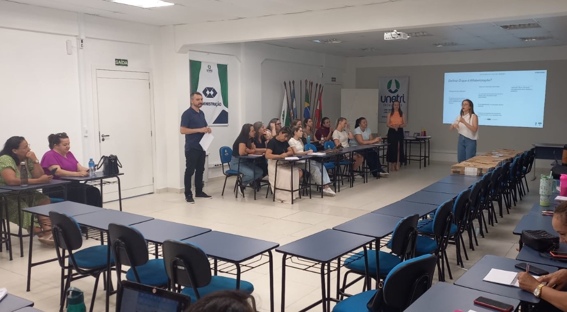 Na quinta e sexta-feira, a Secretaria também integrou a formação do Programa Alfabetiza Santa Catarina, reunindo professores das redes municipal, estadual e dos municípios de São José do Cedro, Guarujá do Sul e Princesa, com foco no fortalecimento das práticas de alfabetização e na melhoria dos indicadores de aprendizagem.