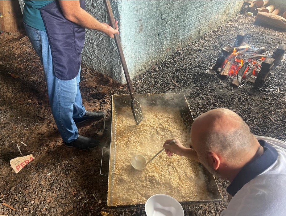 O risoto preparado no tacho, acompanhado de saladas e pão, aqueceu estômagos e corações. Cada prato servido carregava um significado maior: era carinho, era apoio, era força transformada em ação.