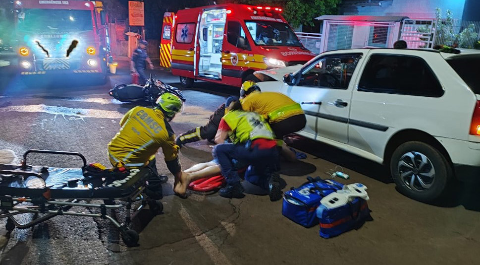 Um acidente de trânsito envolvendo uma colisão frontal entre um automóvel VW/Gol e uma motocicleta deixou duas pessoas feridas na noite deste domingo (15), no Bairro Santo Antônio, em Chapecó.