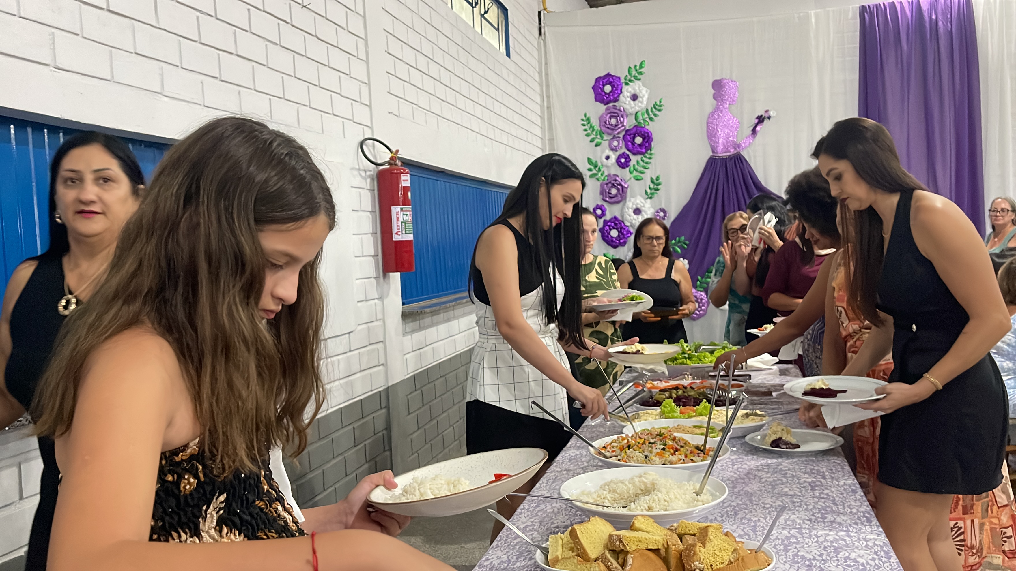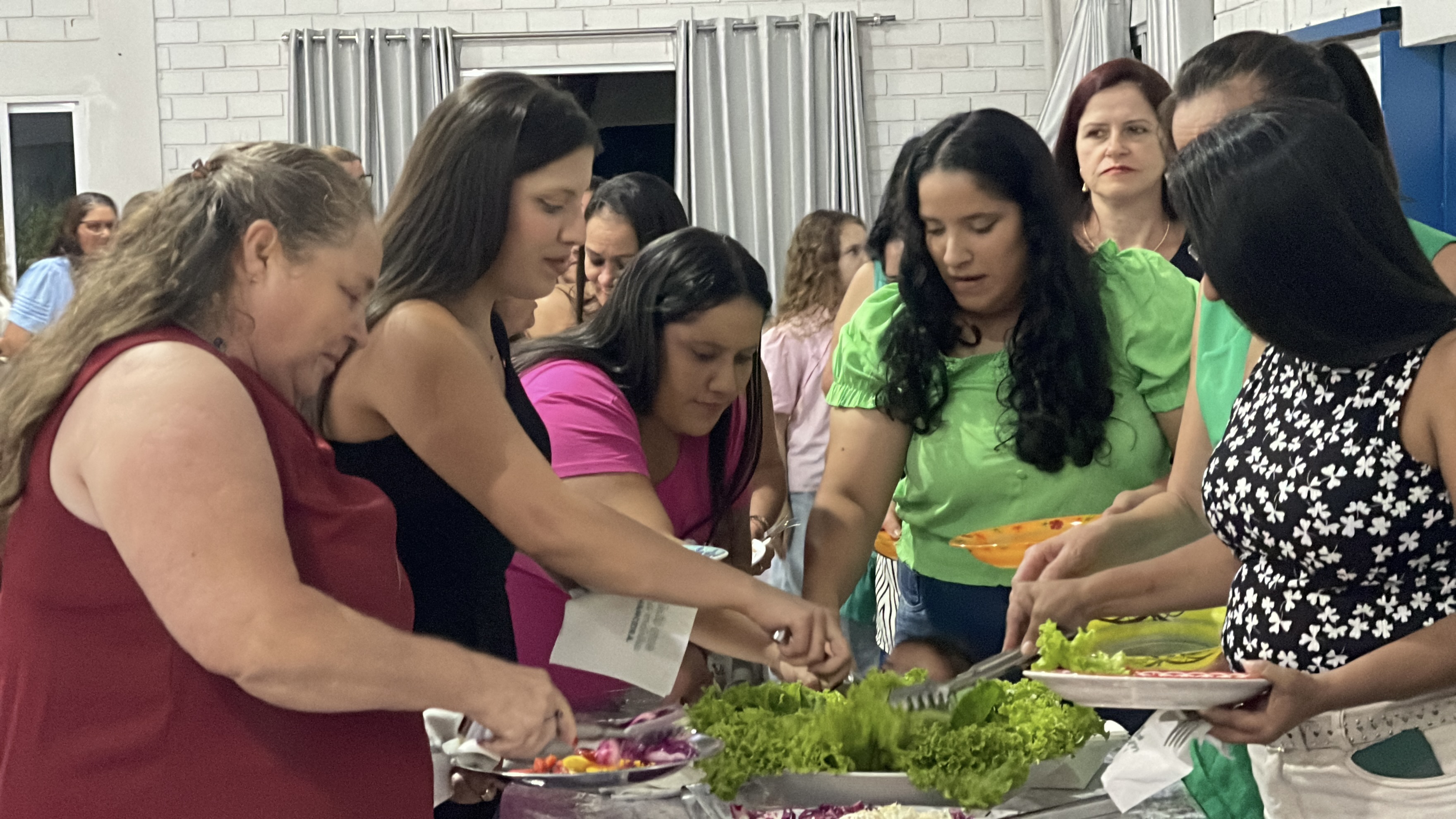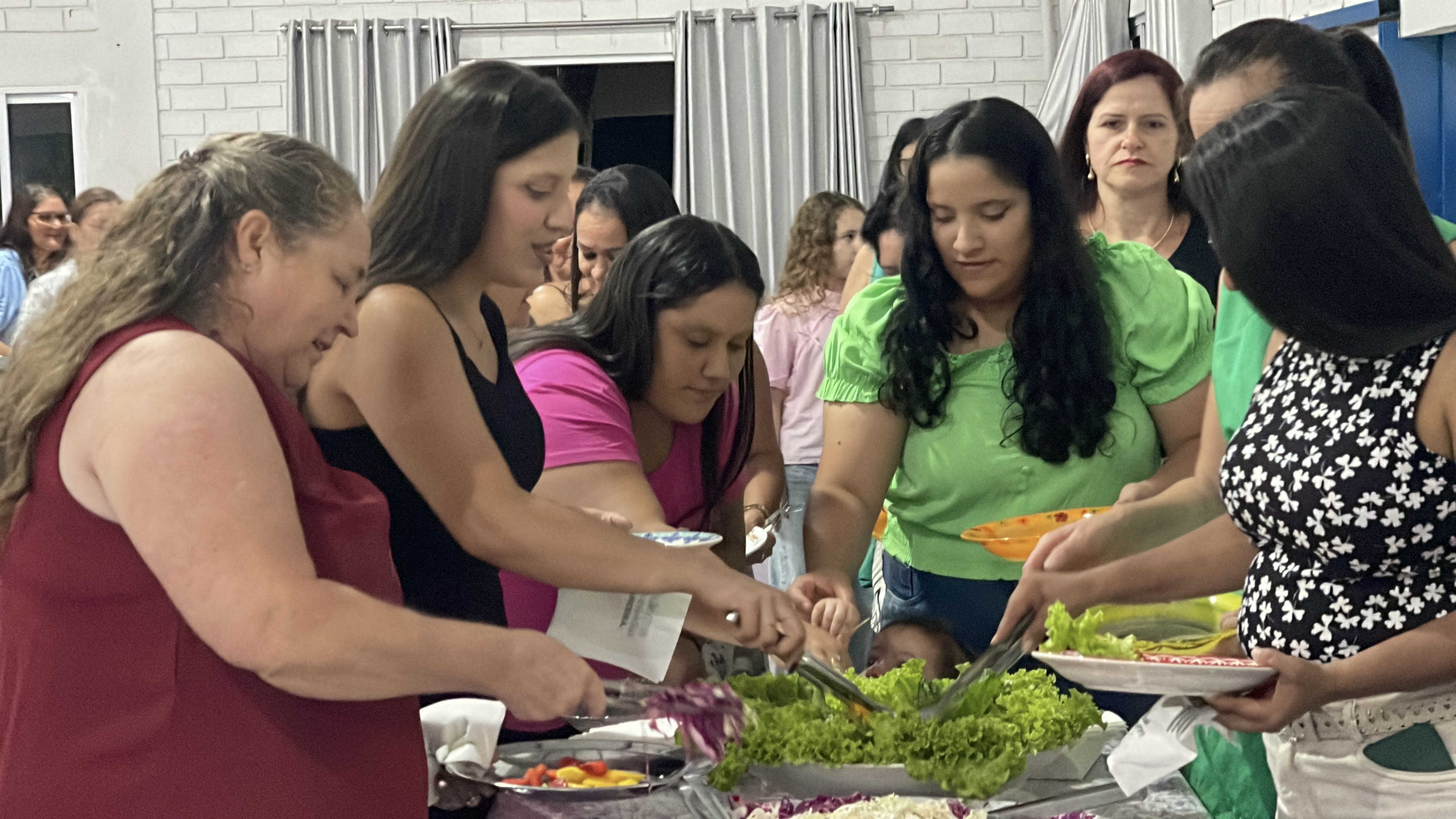 Após a palestra, foi servido jantar com sobremesa, além do sorteio de brindes, proporcionando momentos de integração e descontração entre as participantes. A programação foi encerrada com show da Banda Nóis Quatro, que animou o público e garantiu um clima festivo ao evento.
