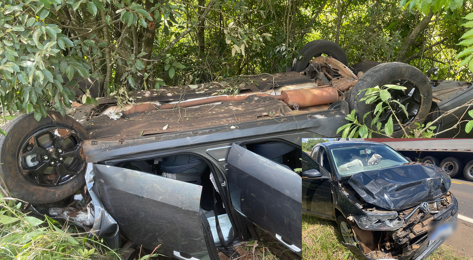 Colisão traseira seguida de capotamento é registrado  na BR-163