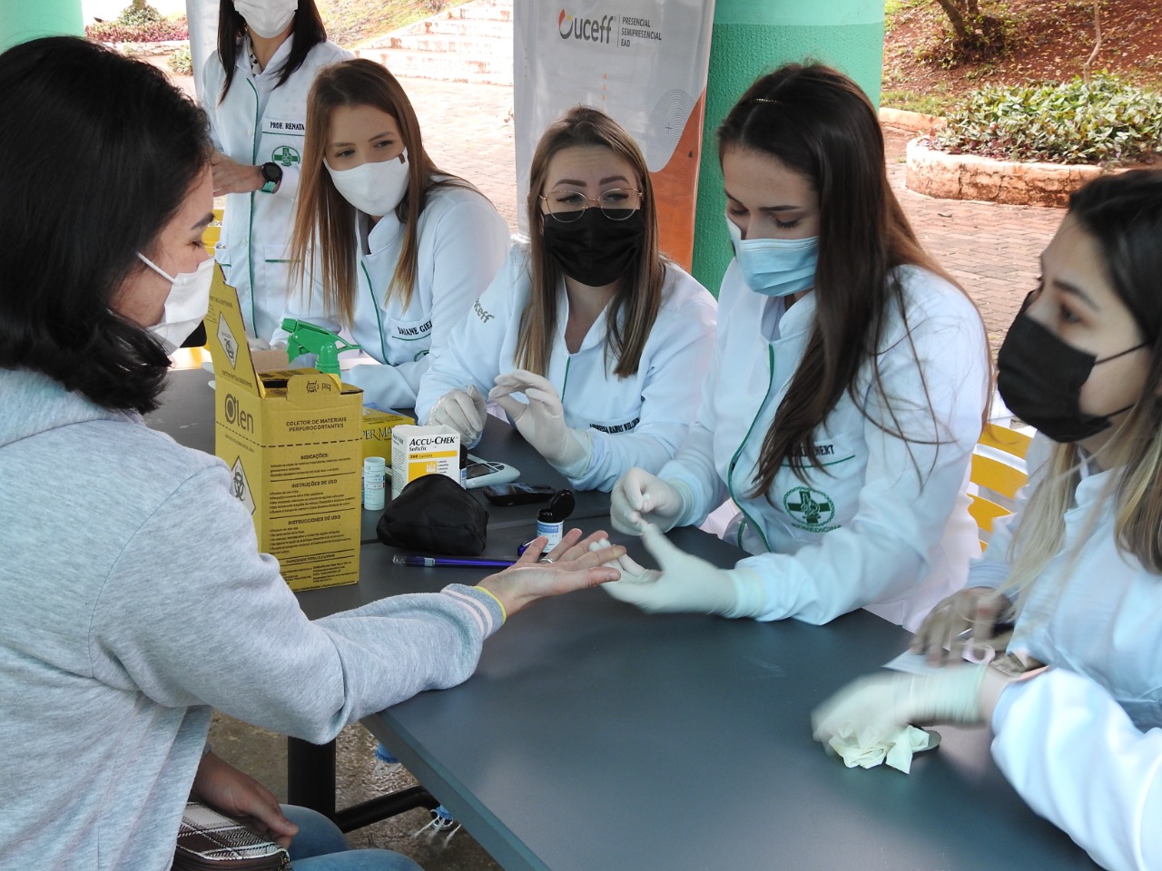 As ações tiveram ainda, a parceria da UCEFF Faculdades, que disponibilizou acadêmicos dos cursos de Biomedicina, Nutrição, Fisioterapia e Estética, os quais orientaram a população com dicas voltadas à educação, prevenção e promoção da saúde.