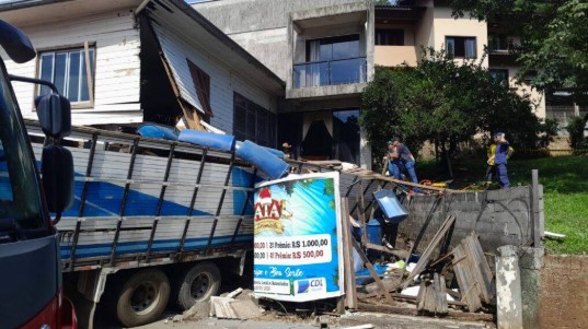 Um caminhão carregado com bois bateu contra um estabelecimento na manhã desta sexta-feira, dia 6, após o motorista de perder o controle enquanto transitava na Avenida Nereu Ramos, no Centro de Ibicaré, Oeste catarinense.