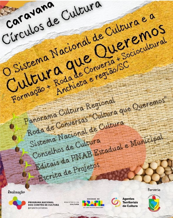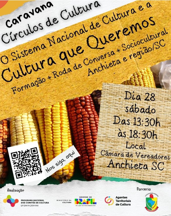 No próximo dia 28 de março de 2026, o município de Anchieta (SC) será palco do evento “Círculos de Cultura – o Sistema Nacional de Cultura e a Cultura que Queremos”, promovido pelo Comitê de Cultura de Santa Catarina. A atividade ocorre das 13h30 às 20h, no Salão Paroquial, com entrada gratuita.