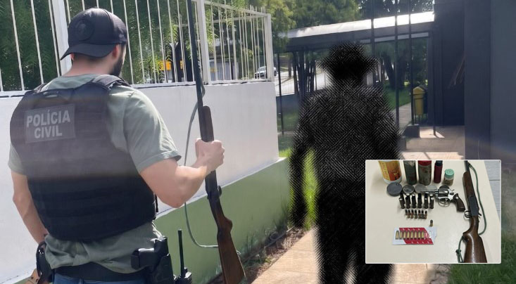 Diante da informação de que o homem possuía armas em casa, os policiais solicitaram um mandado de busca e apreensão, que foi autorizado pela Justiça.