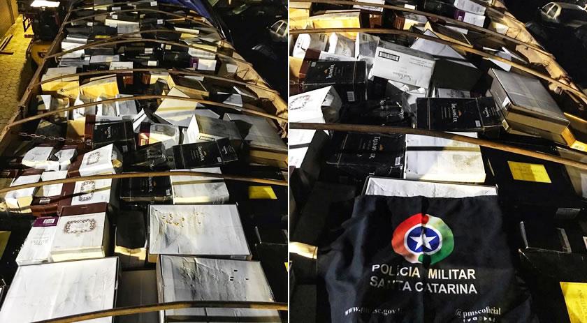 Uma carreta carregada com mais de 800 caixas de vinho argentino foi apreendida na noite de quinta-feira (5), em Dionísio Cerqueira.