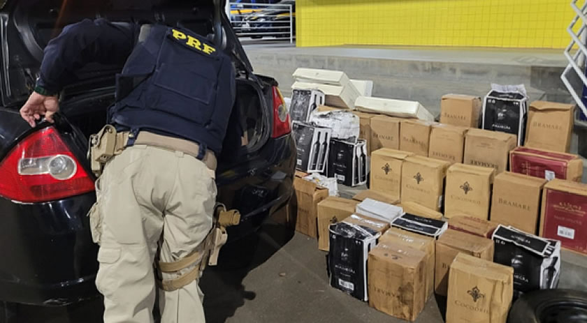 Para os PRFs, o motorista de 26 anos admitiu que não havia declarado a compra ou recolhido os impostos devidos. As garrafas estavam espalhadas pelo banco traseiro e no porta-malas do veículo.