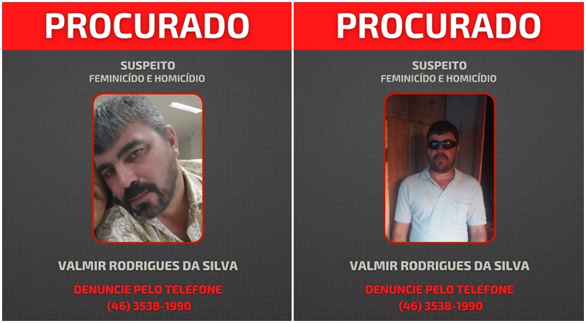 A Polícia Civil divulgou a imagem de Valmir Rodrigues da Silva, ele que é o principal suspeito de matar a ex-mulher e o genro. O fato ocorreu na noite do último sábado (16), em Salto do Lontra, sudoeste do Paraná.