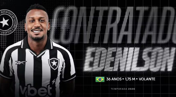 O Botafogo anunciou nesta quarta-feira a contratação do volante Edenílson, de 36 anos. O jogador chega ao clube carioca após rescindir contrato com o Grêmio e reforça o elenco alvinegro para a sequência da temporada.