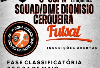 A 3ª Copa Squad/DME Dionísio Cerqueira será realizada neste fim de semana, nos ginásios Adelino Mangini, em Dionísio Cerqueira, e Bragamate, em Barracão.