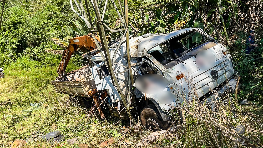 Segundo informações os profissionais estavam transitando pelo trecho recém-asfaltado quando o condutor perdeu o controle da direção, levando o veículo a sair da pista e capotar. O caminhão só parou após colidir contra uma torre de alta tensão.