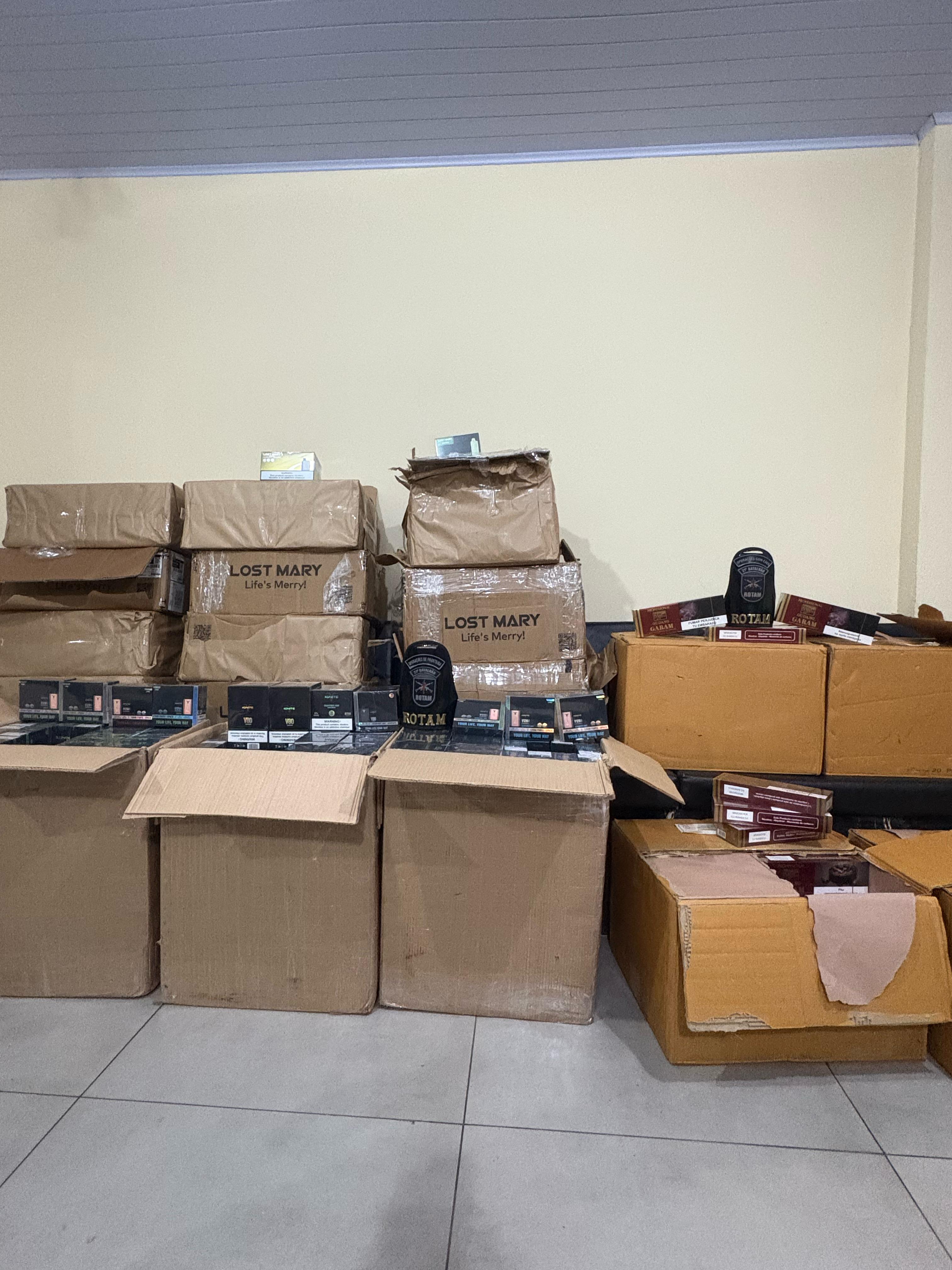 Os policiais montaram um ponto de observação na rodovia e iniciaram patrulhamento. O veículo foi encontrado em um posto de combustível, e o suspeito abordado nas proximidades. Dentro do carro, havia diversas caixas com 4.415 cigarros eletrônicos e 3.200 carteiras de cigarro convencional. O veículo também estava adaptado para o transporte desses produtos.
