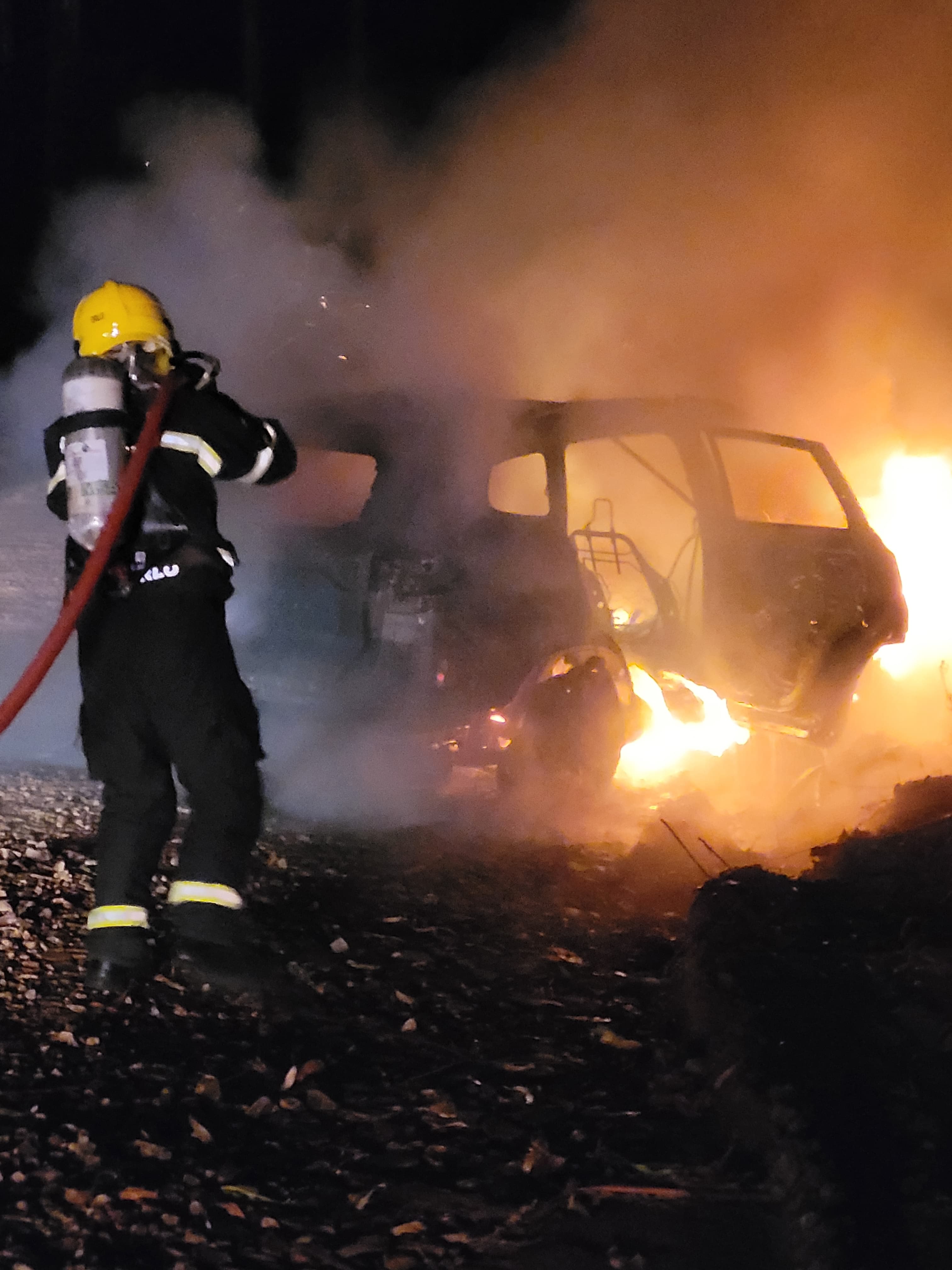 Segundo o Corpo de Bombeiros, ao chegar ao local, a equipe encontrou o carro, um CAOA Chery Tiggo 8, ano 2020/2021, em chamas. O motorista já estava fora do veículo, consciente e orientado, mas reclamava de dores na barriga.